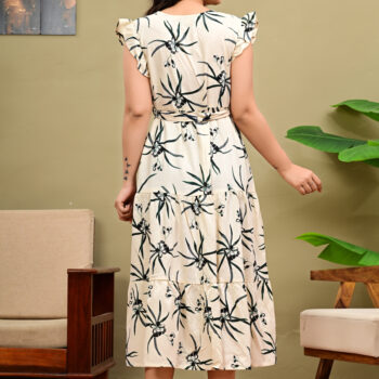 Women Full Length One Piece Floral Print Wrap V Neck | A-Line Fit & Flare Dress for Girls & Ladies