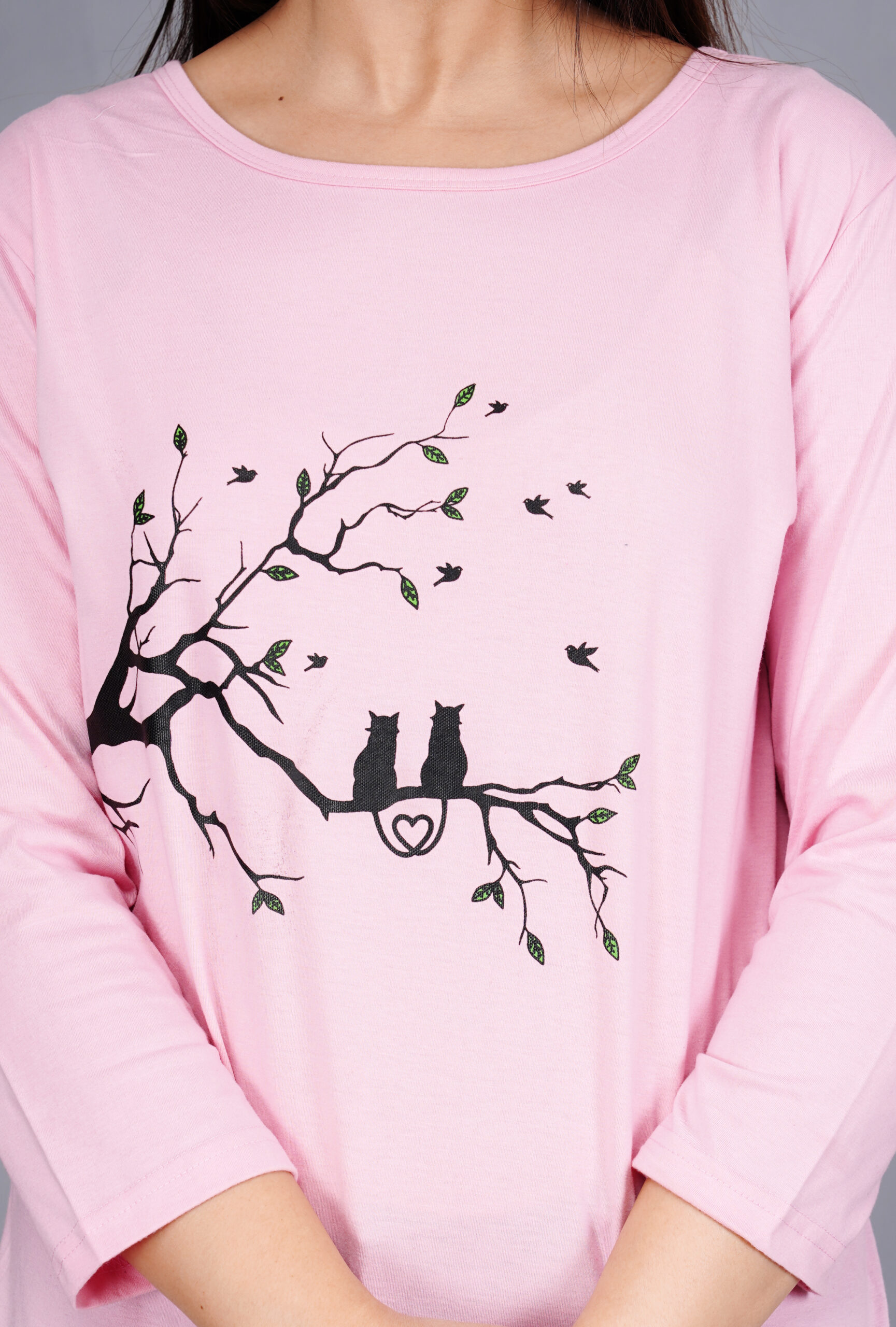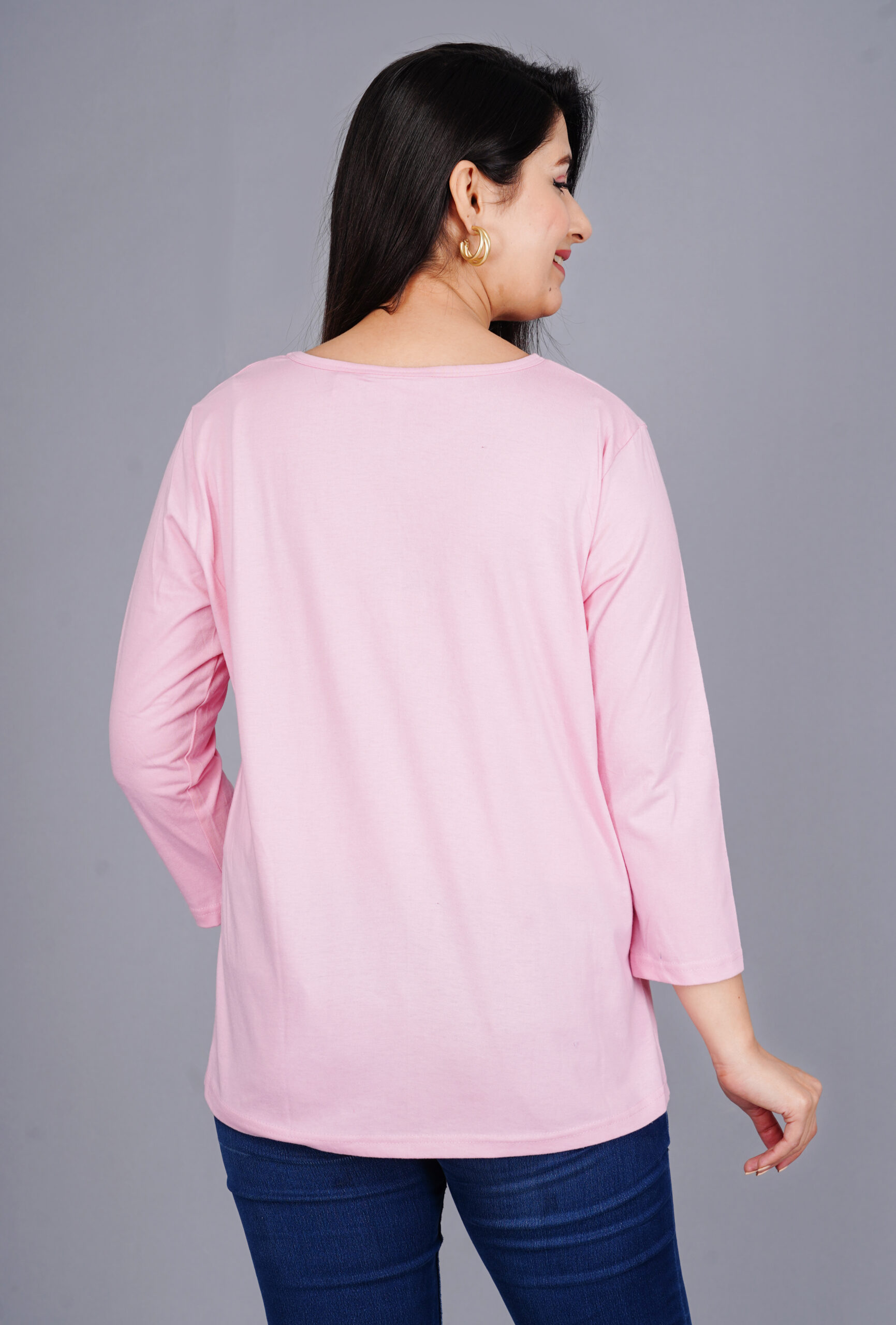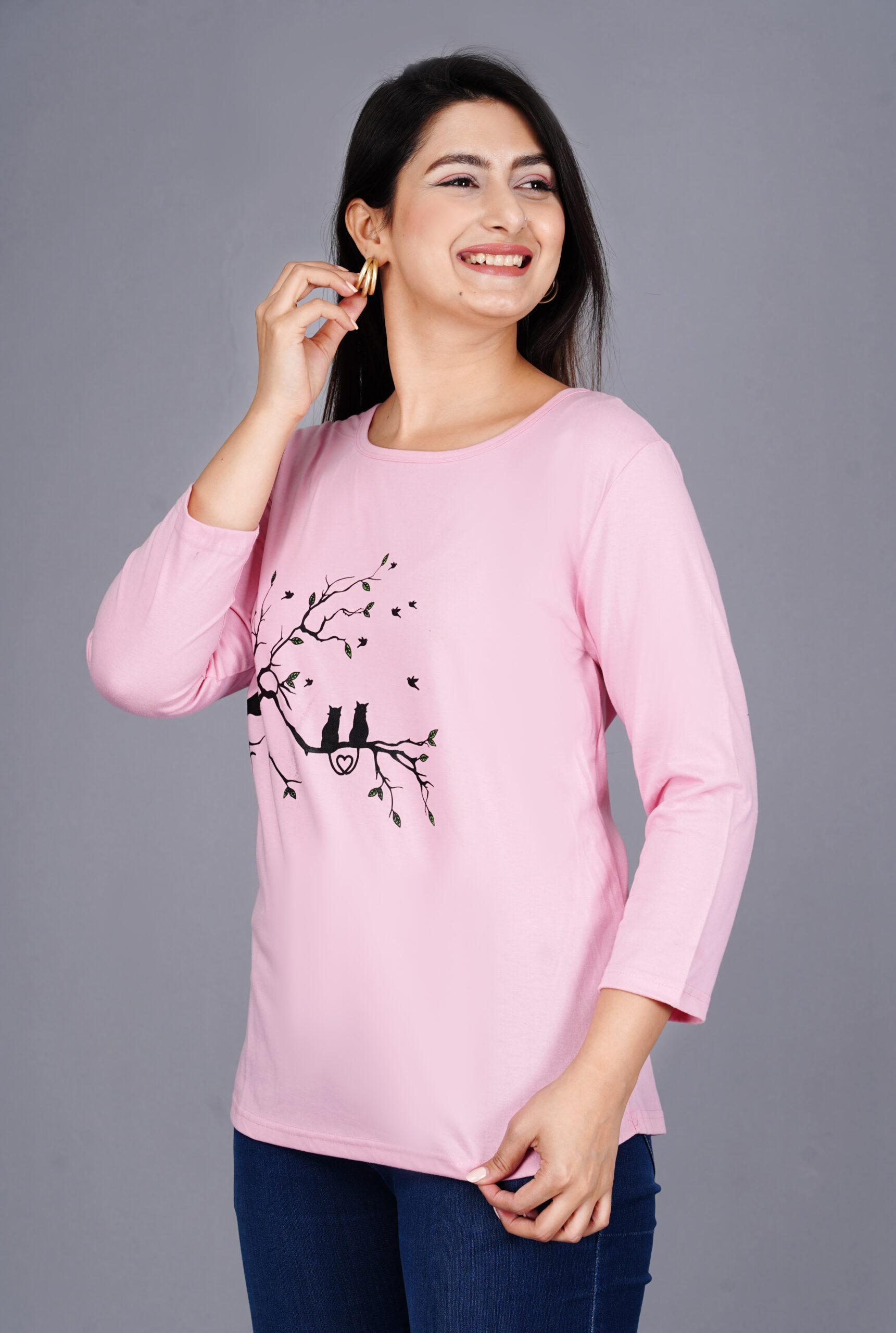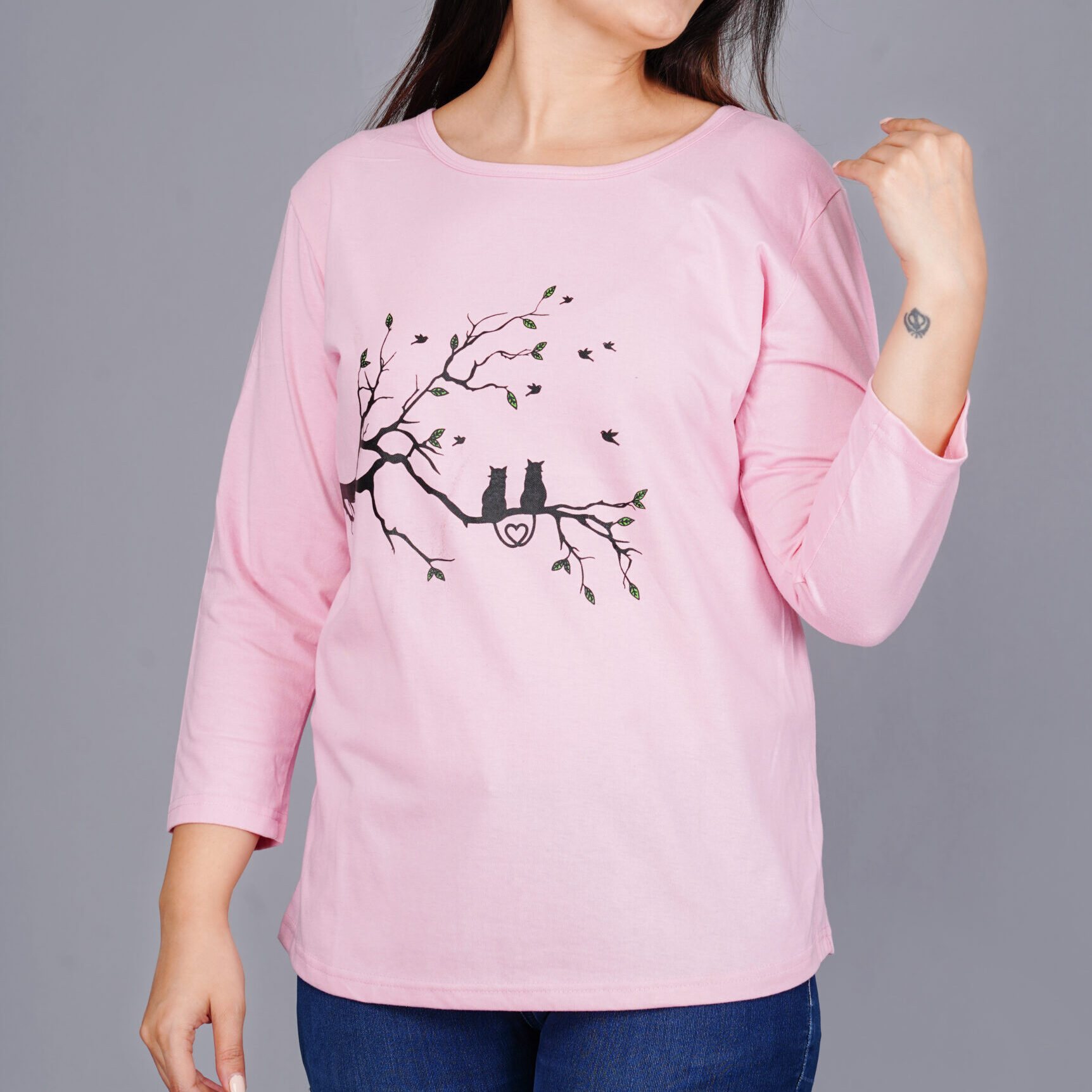 Cotton Printed Full Sleeve T-Shirts for Women – Pink