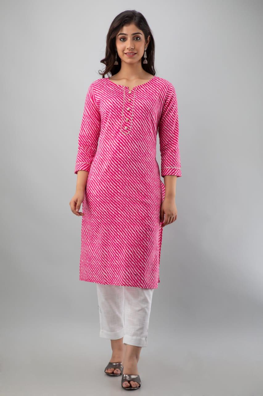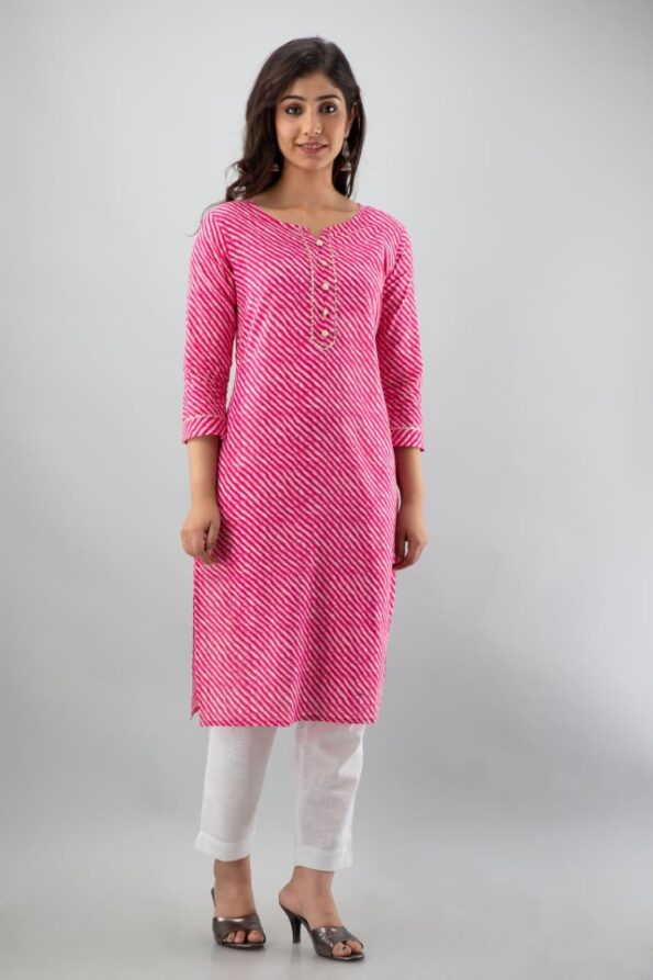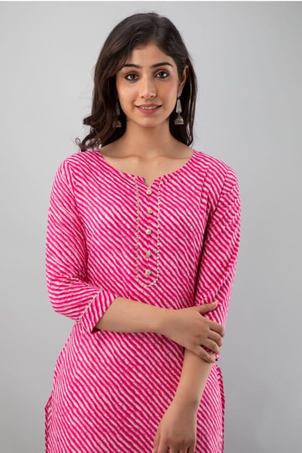 Be the first to review “Cotton Rajasthani Leheriya Kurti | Pink”