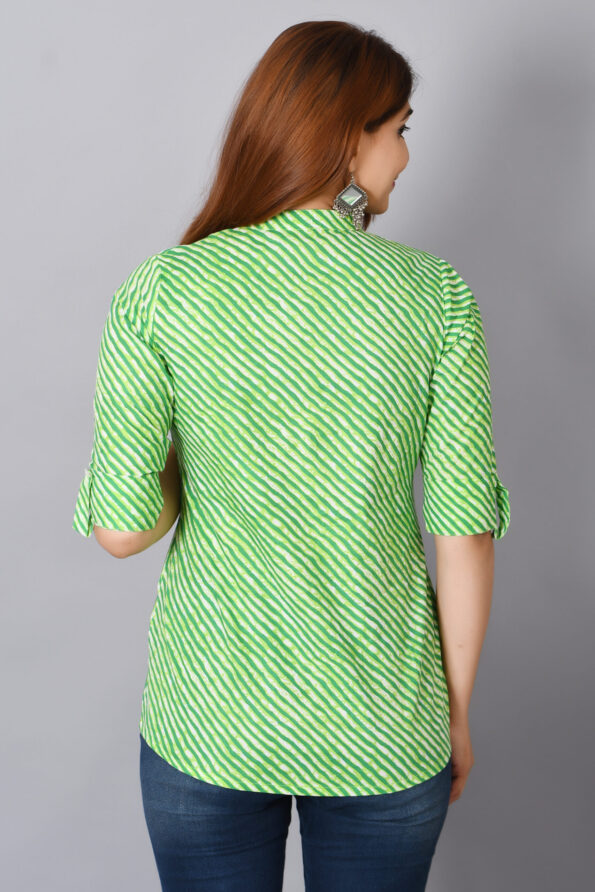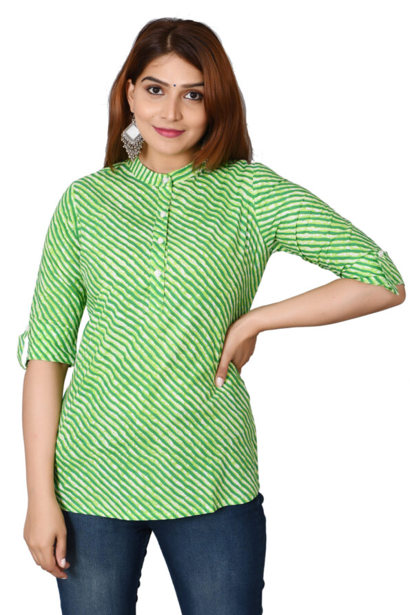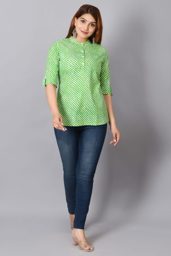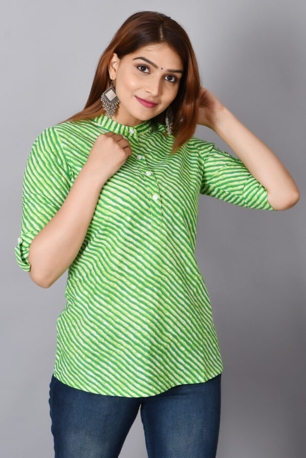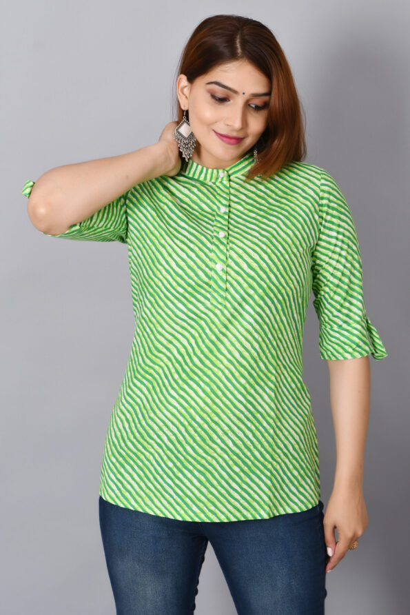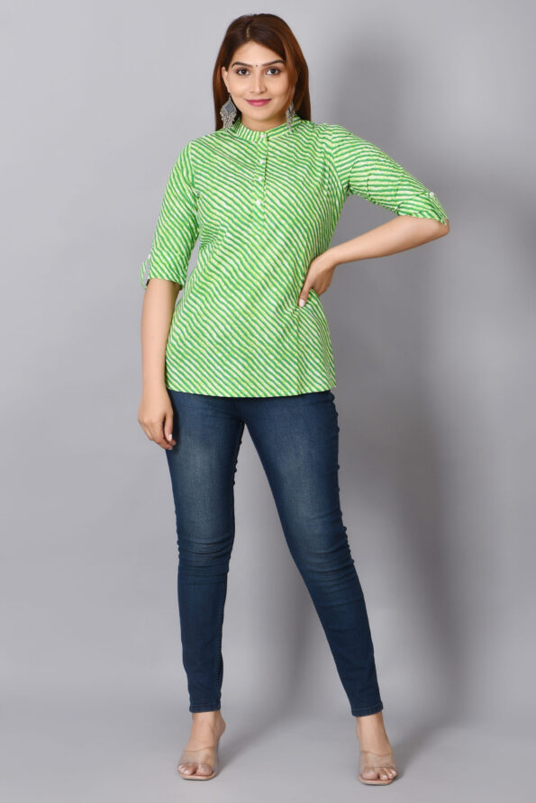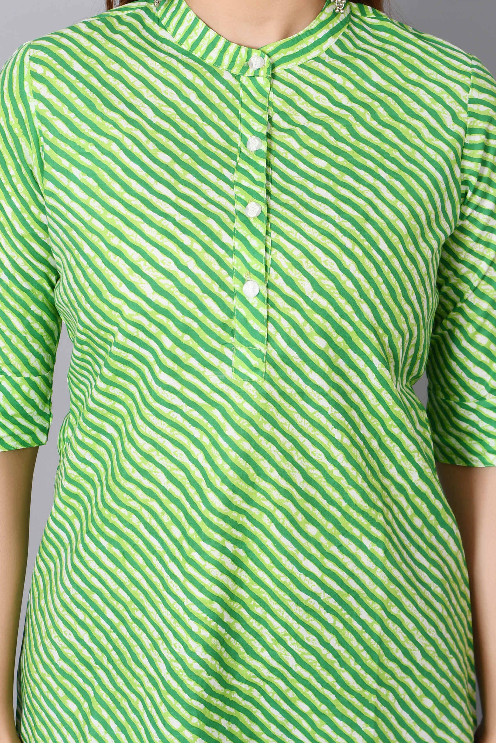 Cotton Rajasthani Short Leheriya Kurti | Green