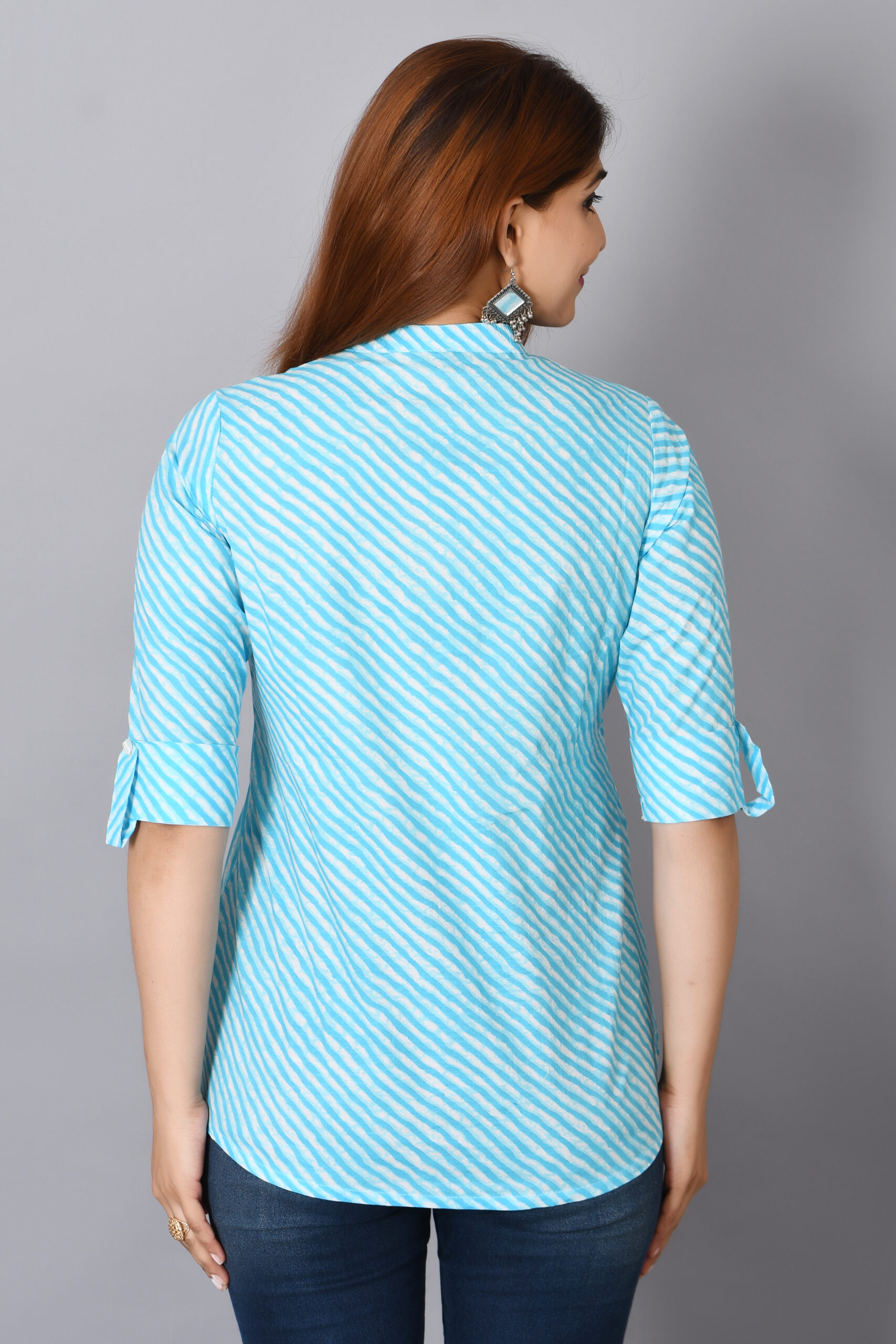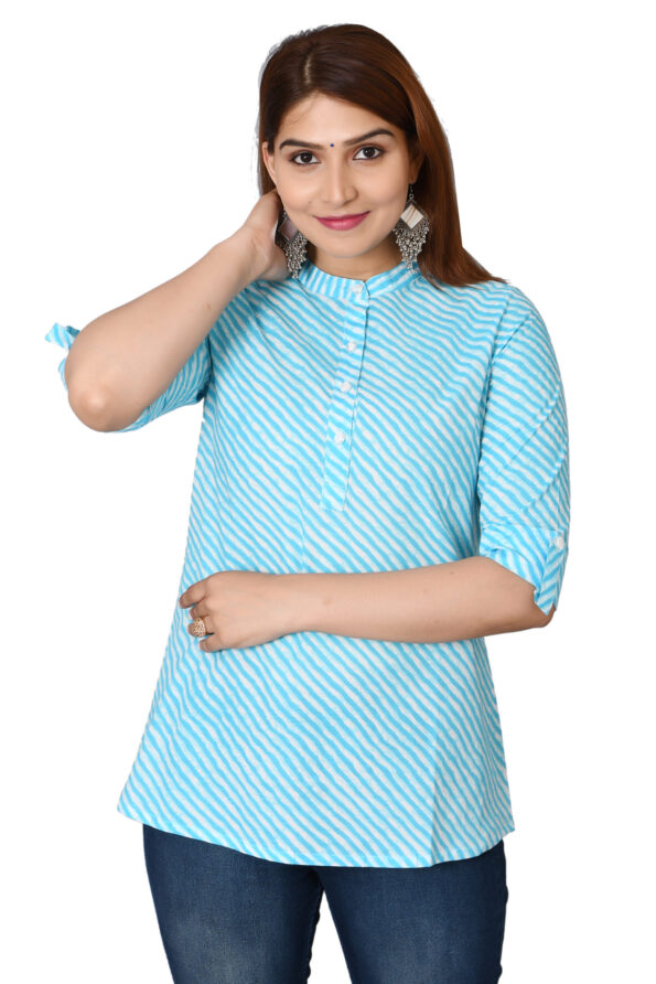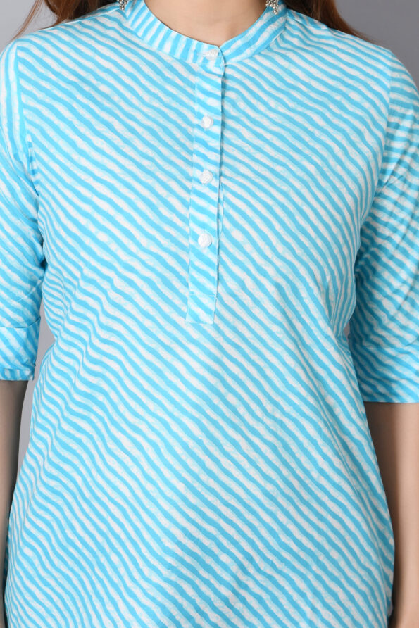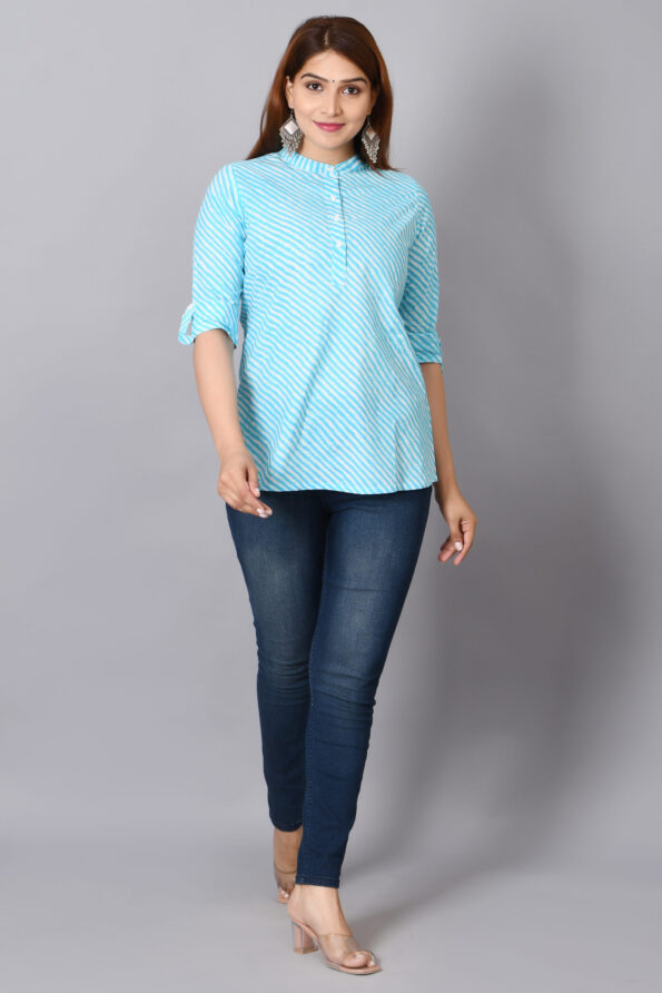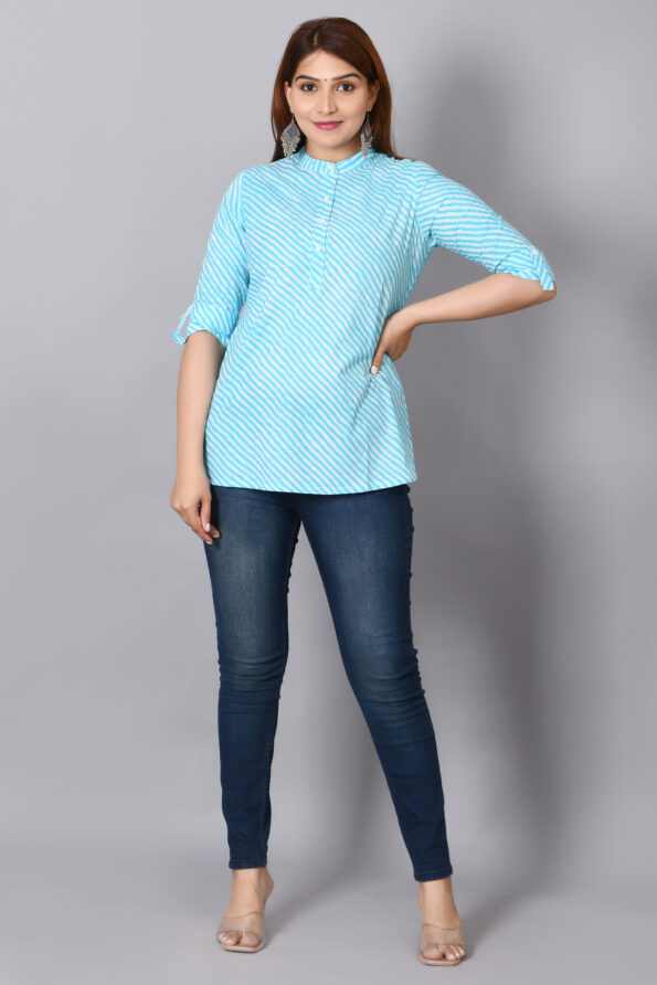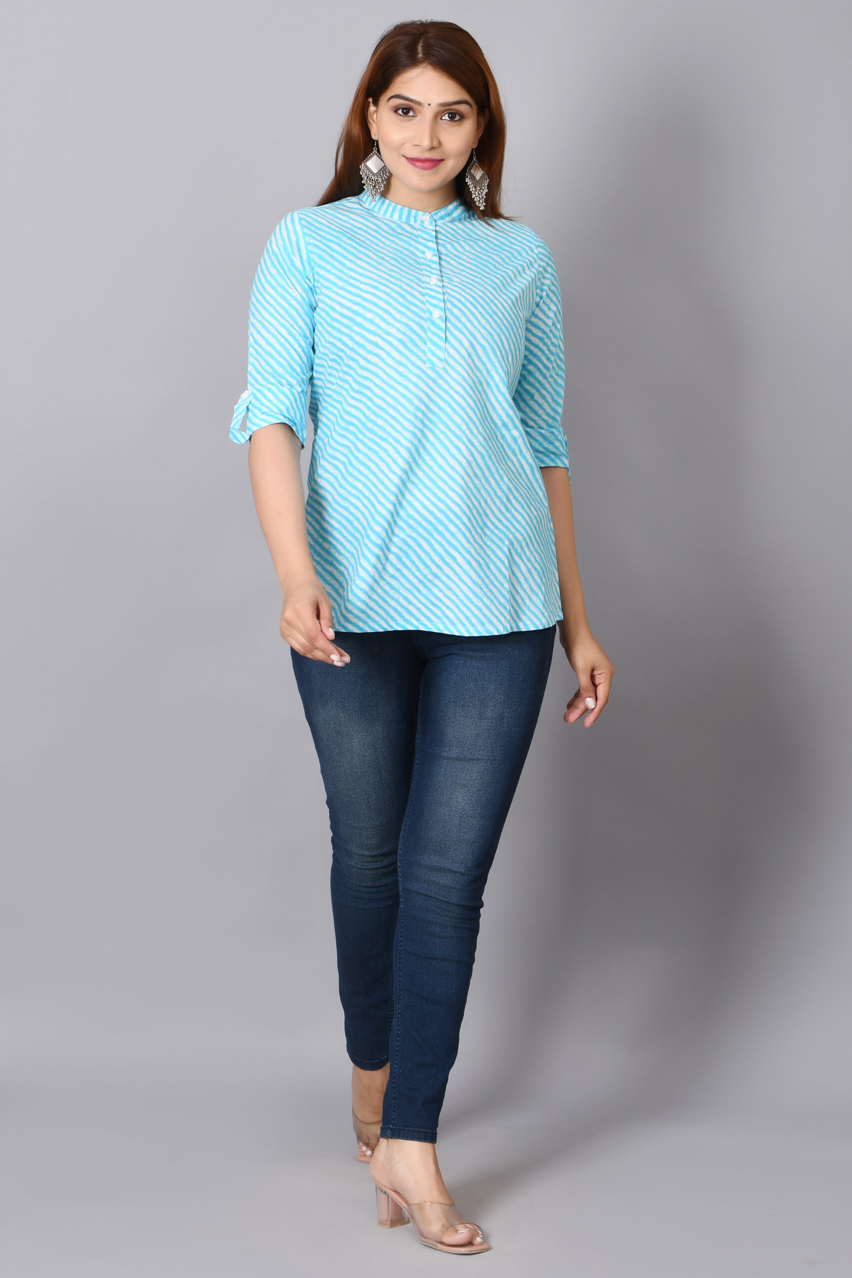 Cotton Rajasthani Short Leheriya Kurti | Light Blue