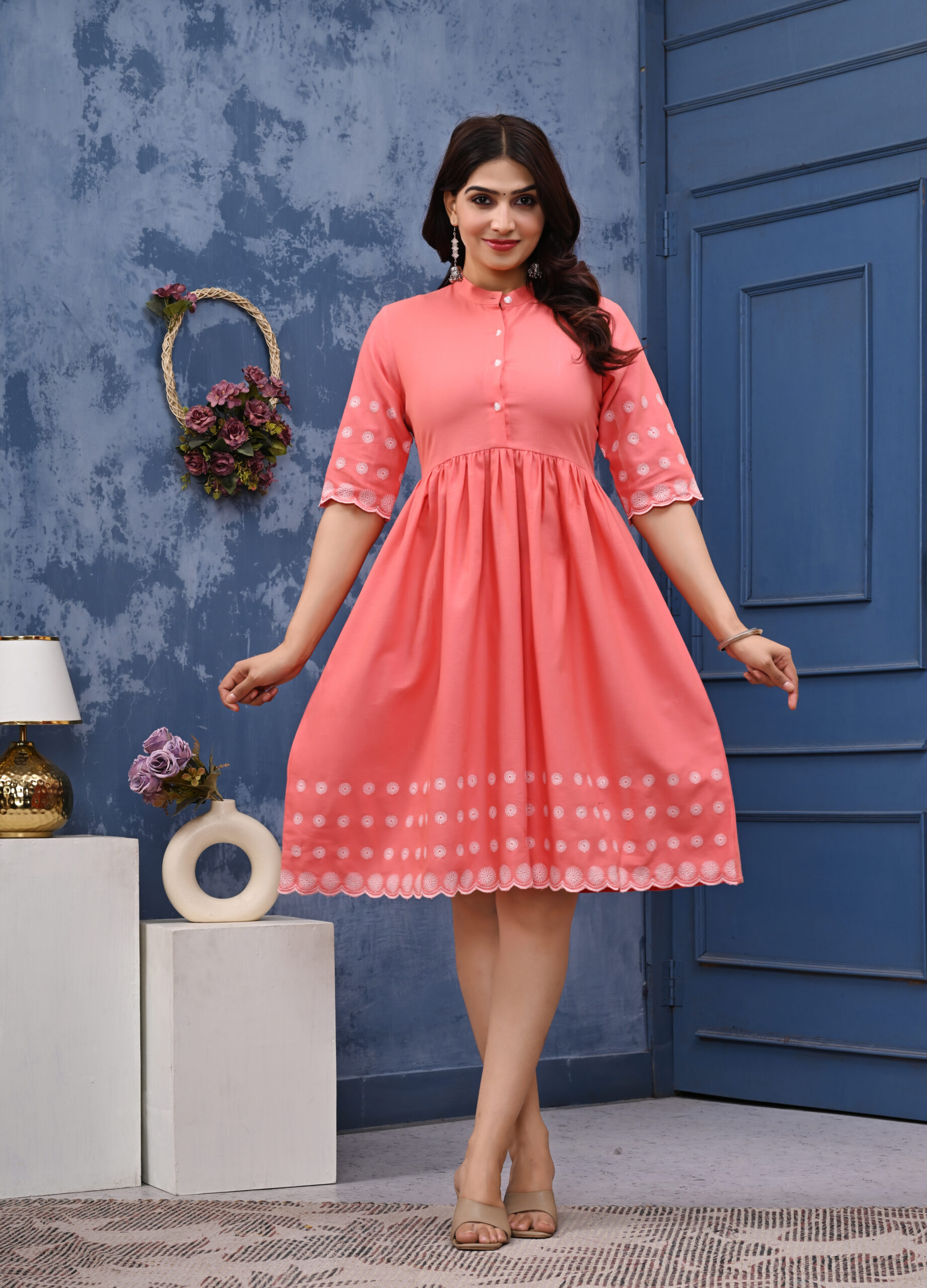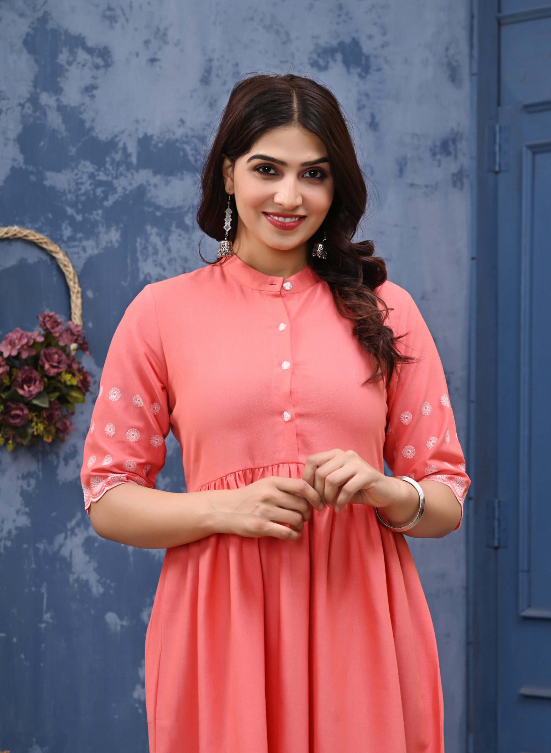 Be the first to review “Embroidered Fit & Flare Midi Dress for Women – Peach”