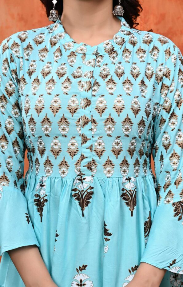 Ethnic Motifs Printed Bell Sleeves Fit & Flare Midi Dress for Women