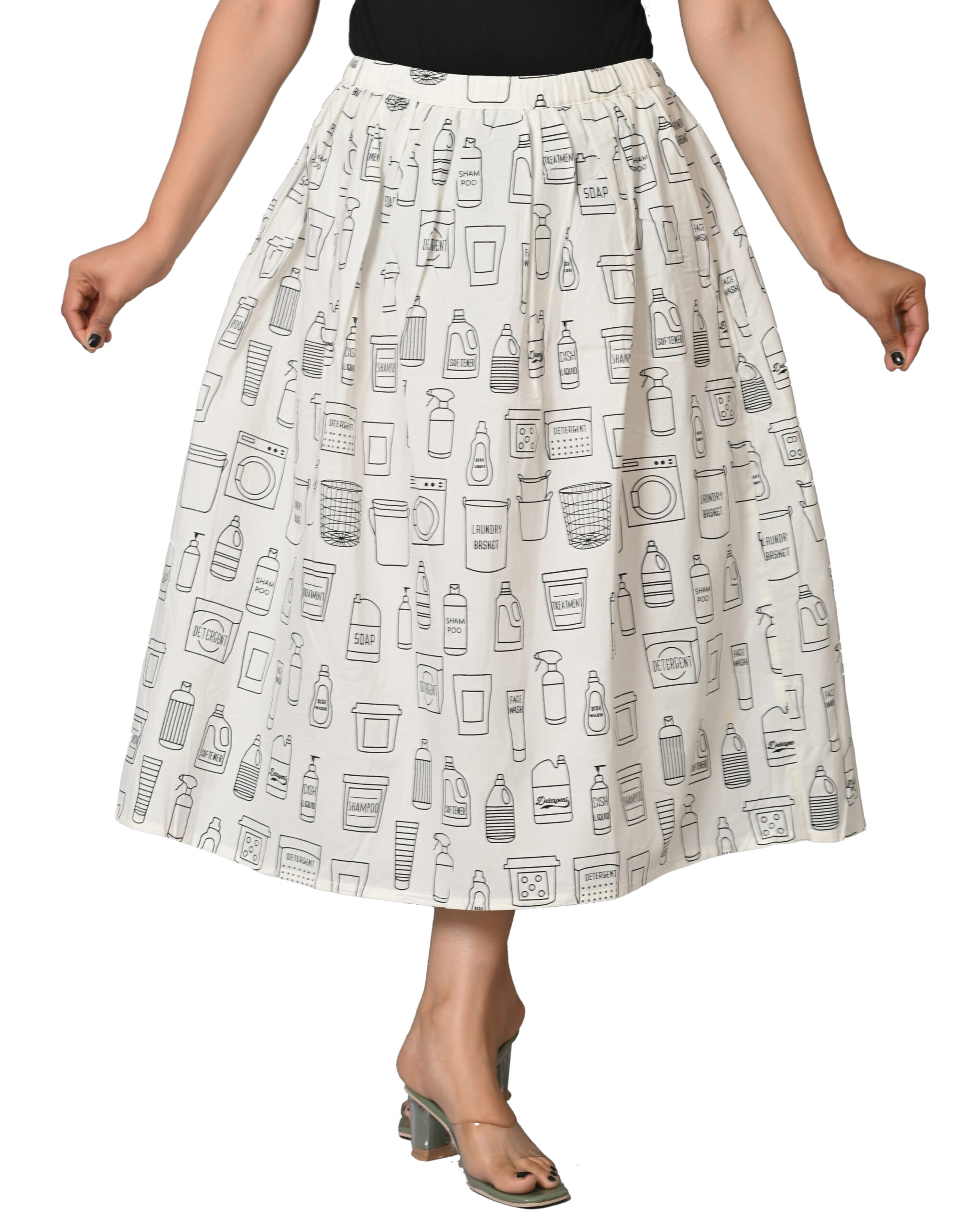 Be the first to review “Free Size Printed Cotton Midi Flared Long Skirts for Women | Grey Line”