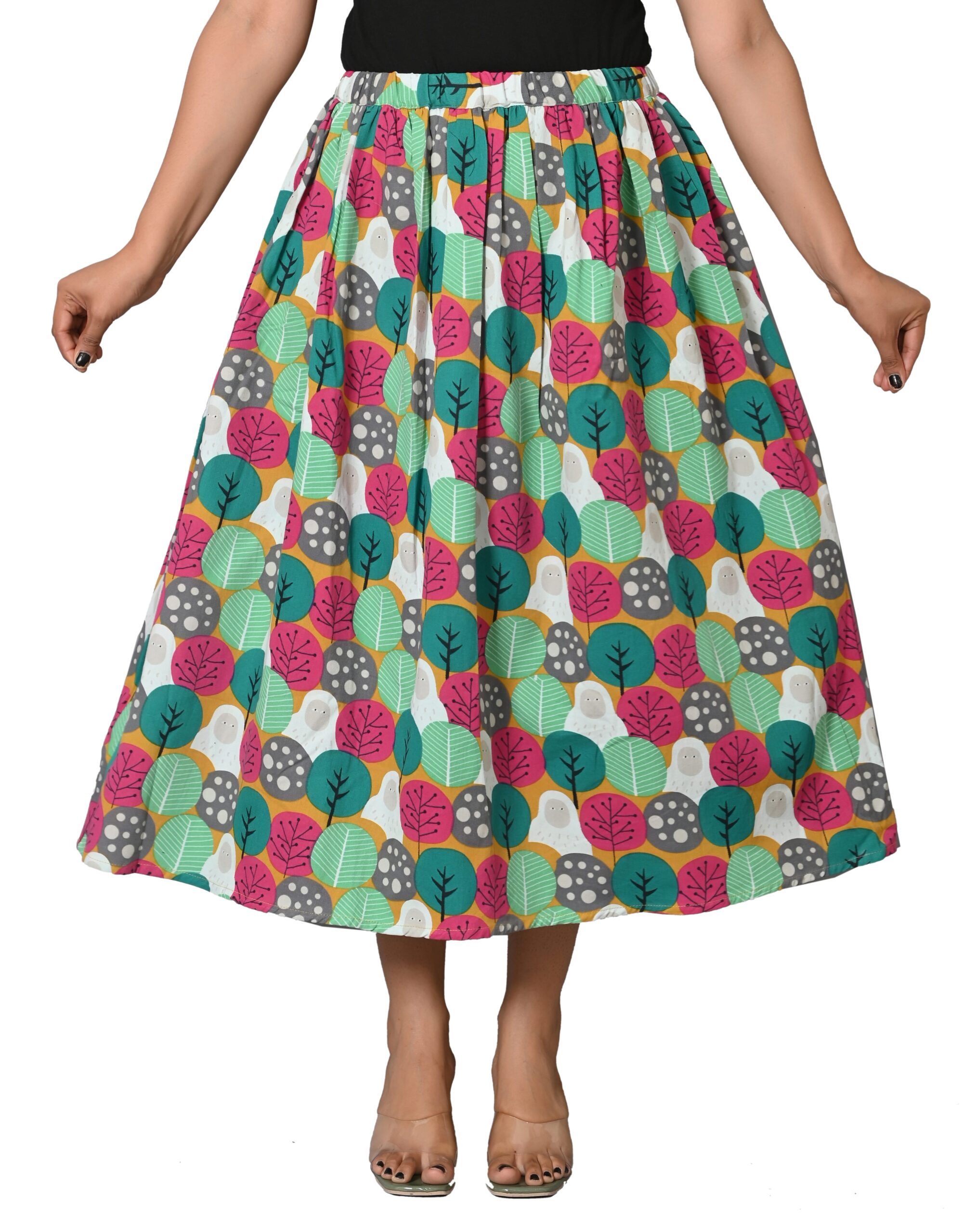 Be the first to review “Free Size Printed Cotton Midi Flared Long Skirts for Women | Whimsical Forest”