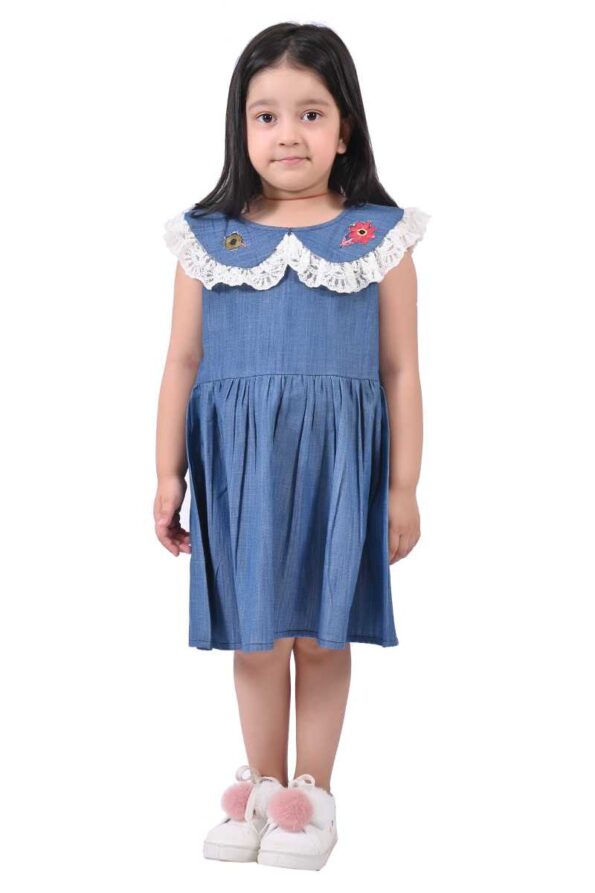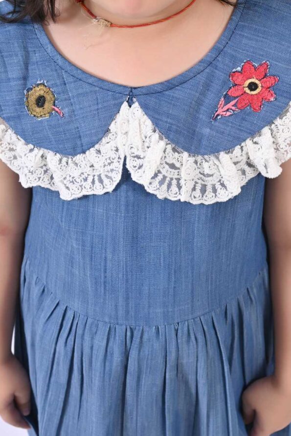 Dress your little one in charm with our trendy kids dress for girls – designed for comfort, cuteness, and elegance. This blue striped dress with embroidered pocket details is perfect as a party wear dress for kid girls, casual outings, or even birthdays.
