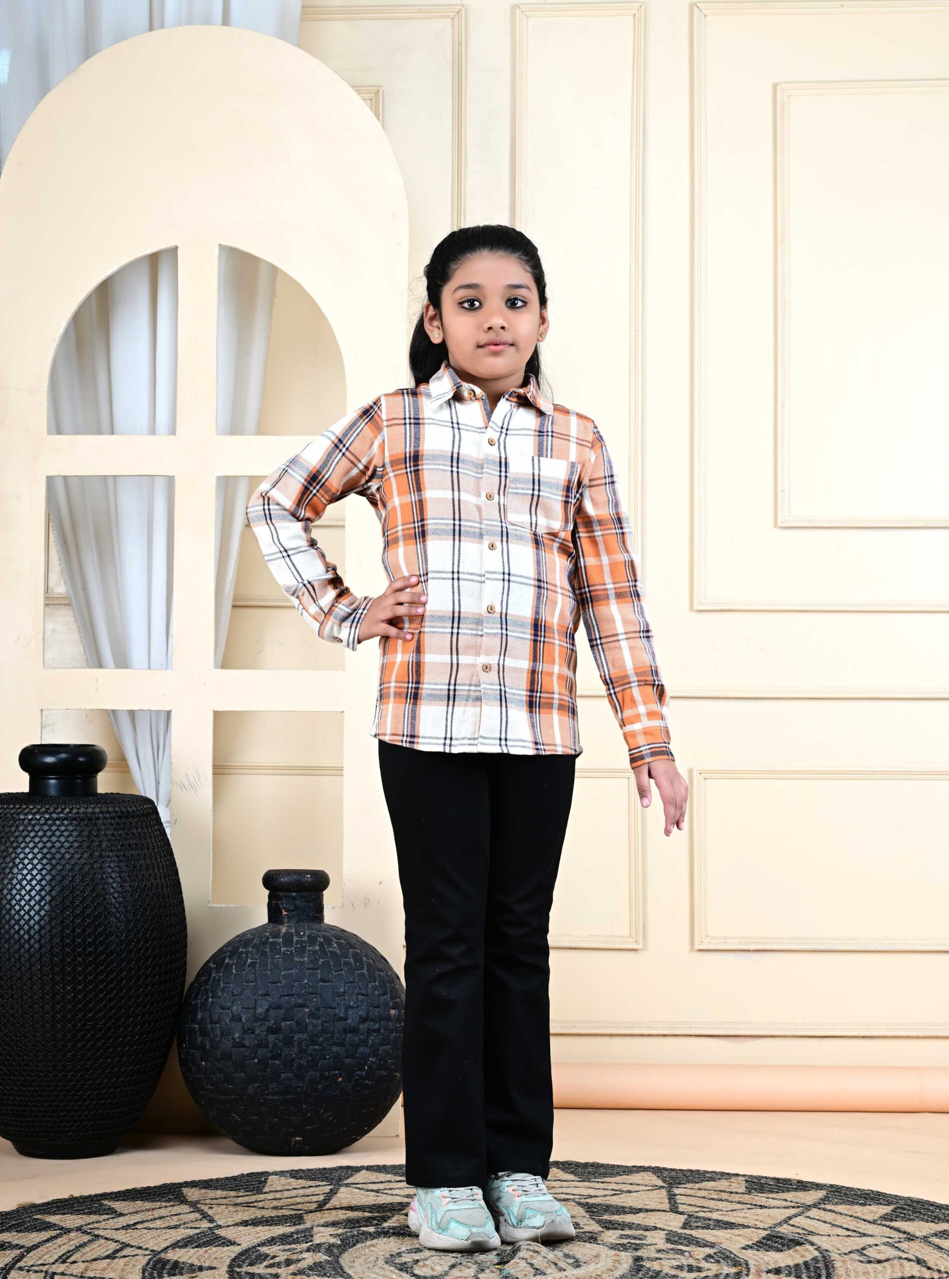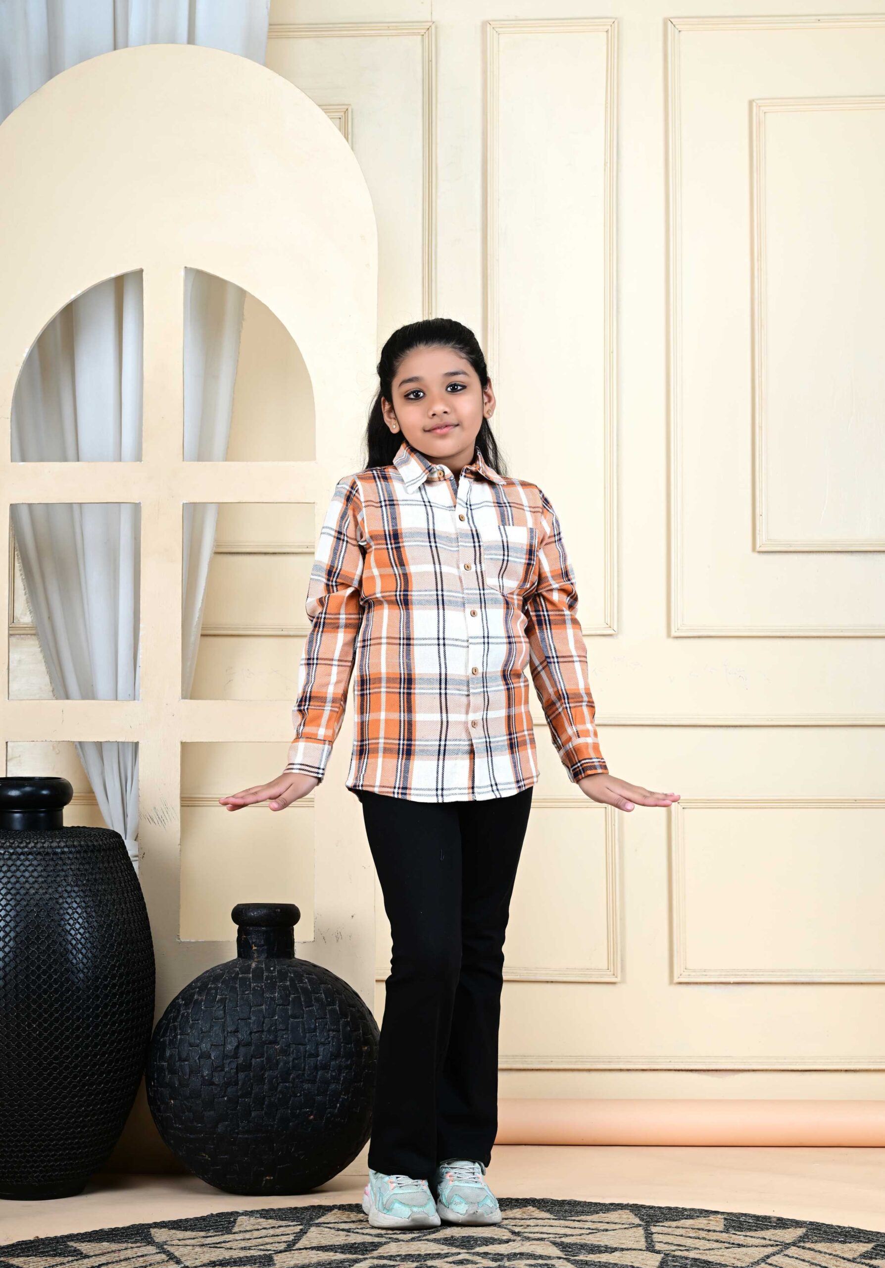 Kids Dress for Girls | Checked Cotton Shirts for Girls - Orange