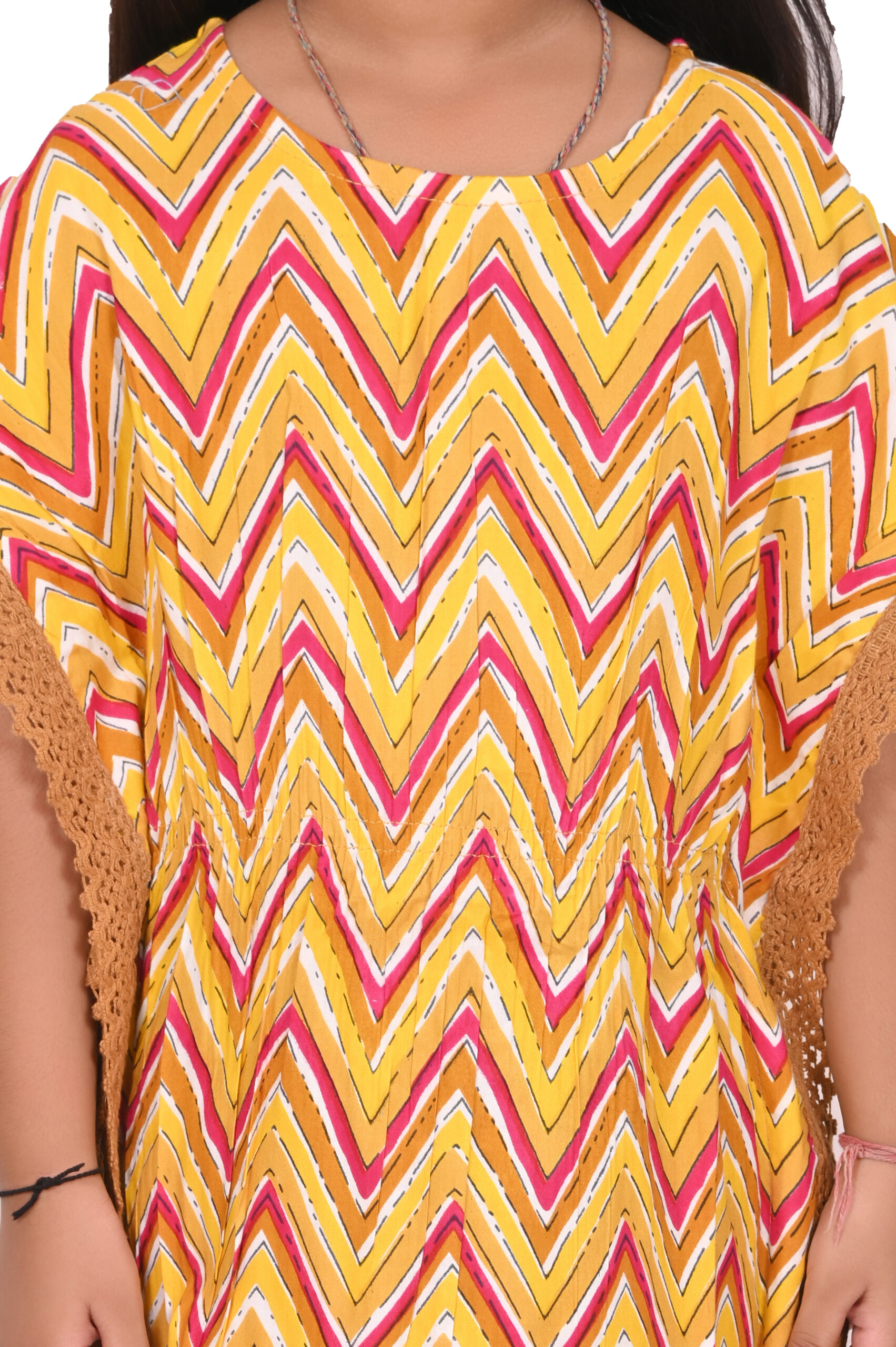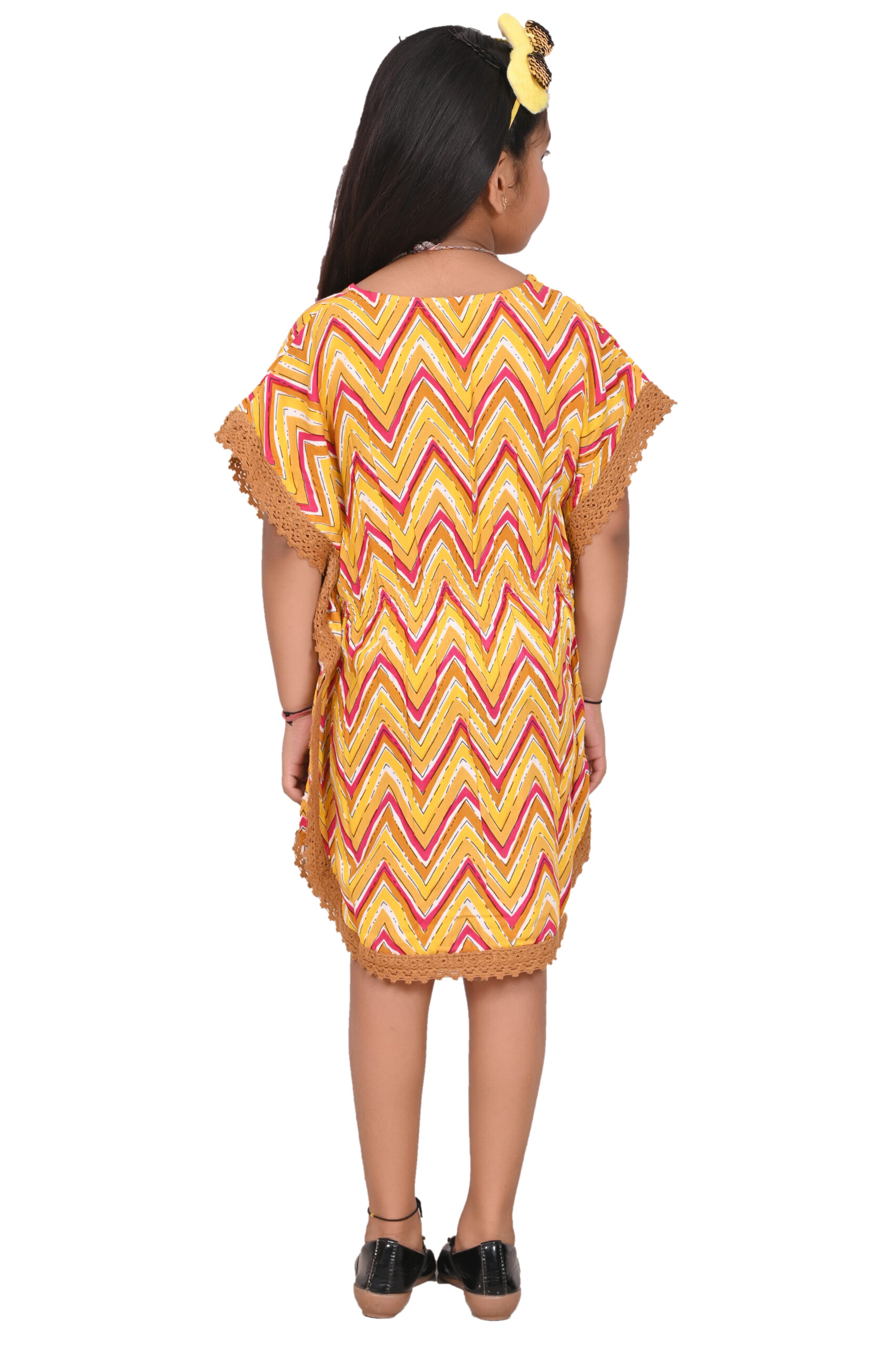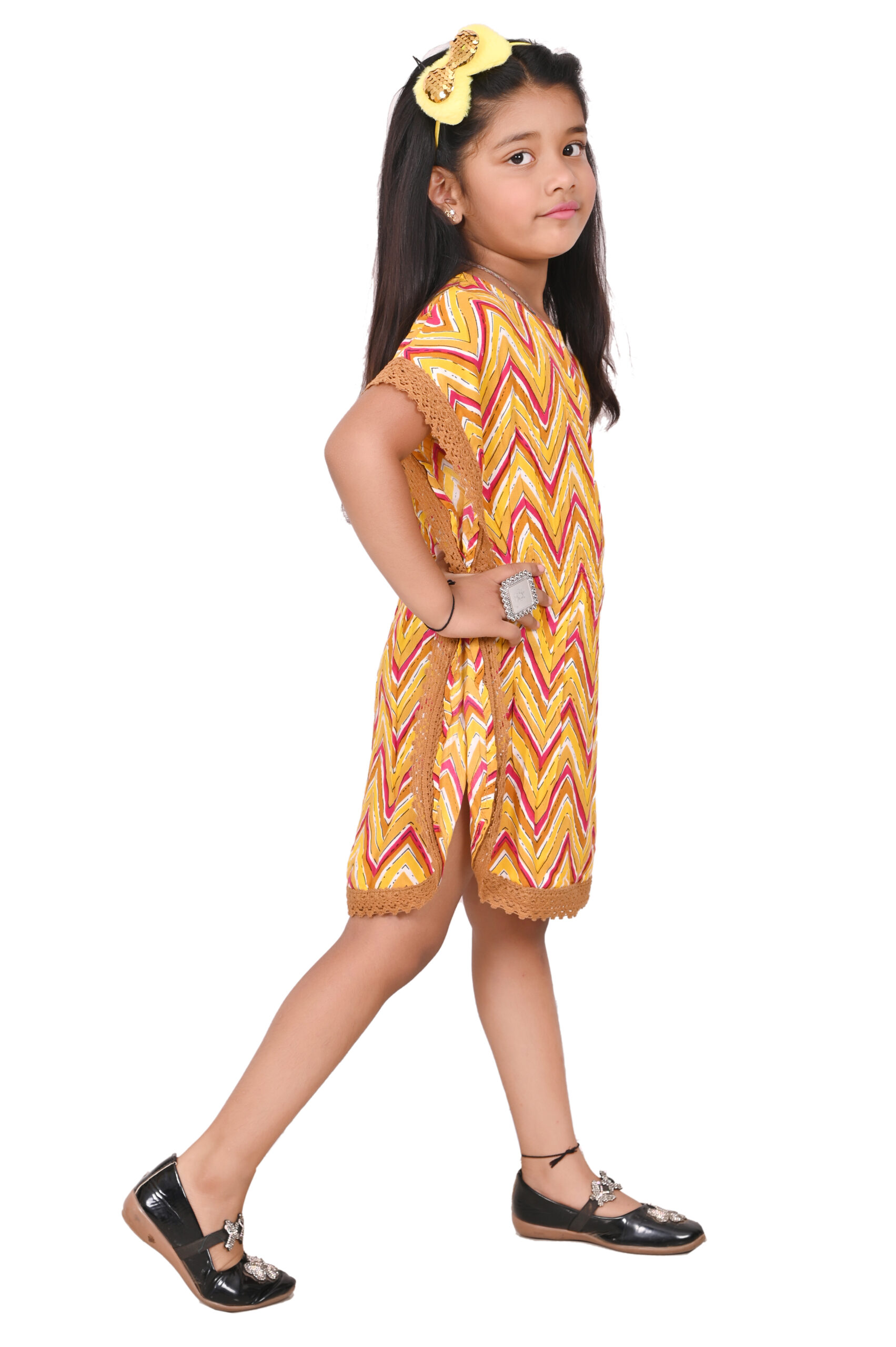 Printed Kaftan Kurti Kids Dress for Girls – Cotton Mustard