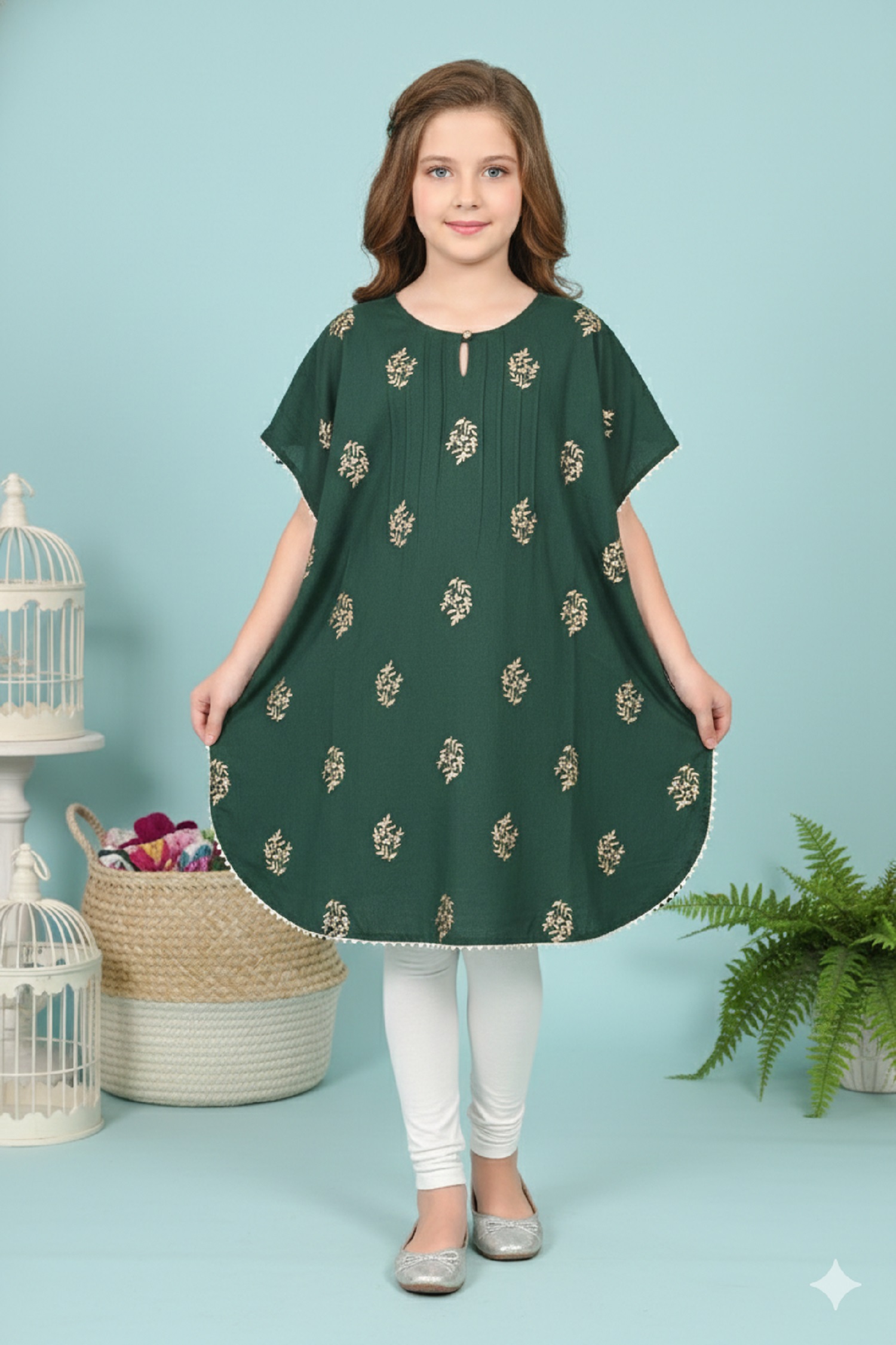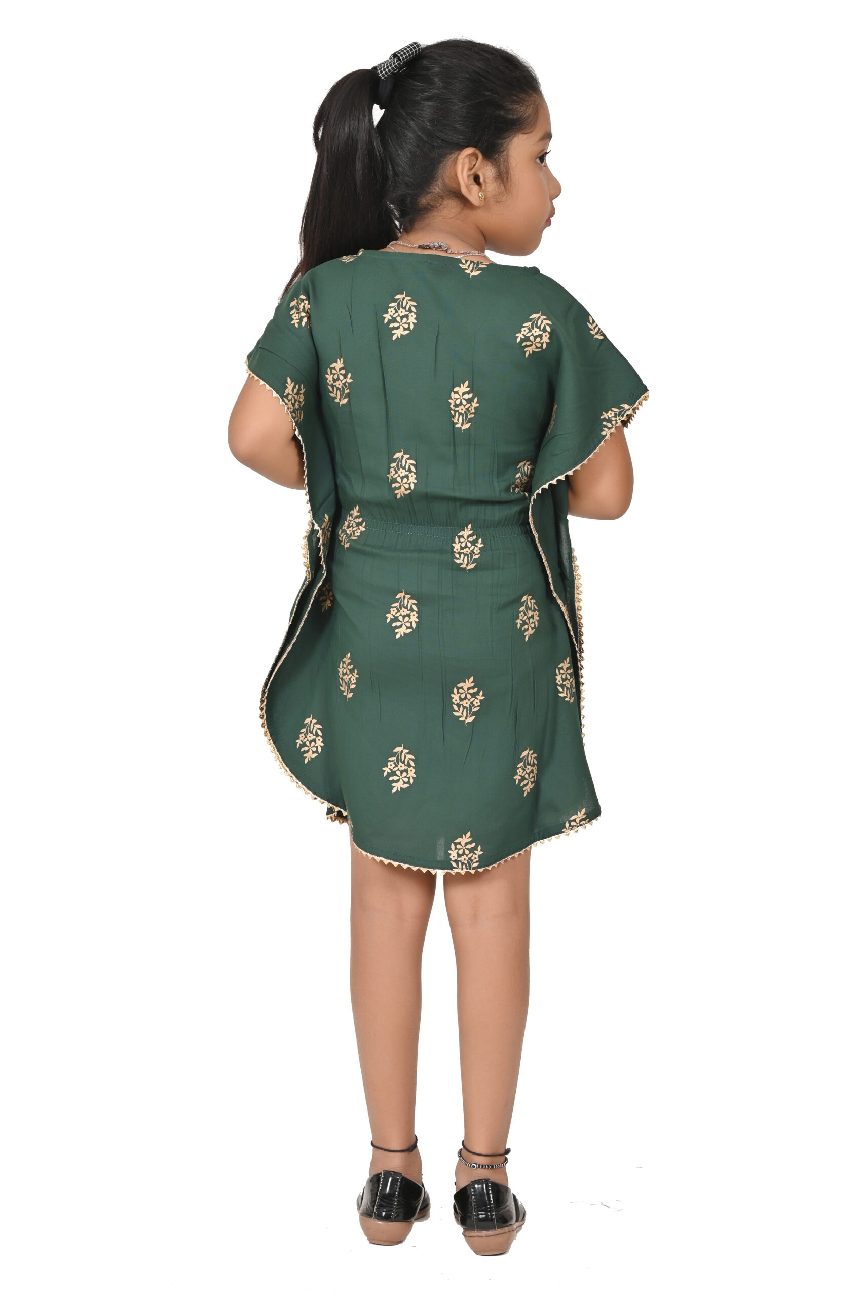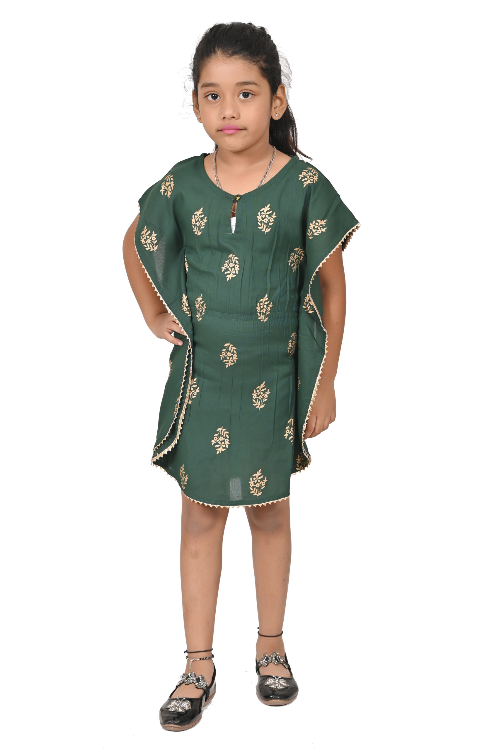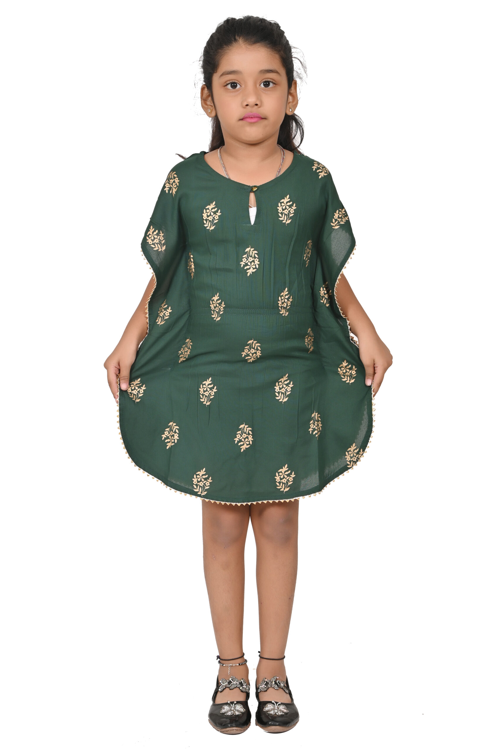 Printed Kaftan Kurti Kids Dress for Girls – Rayon Green