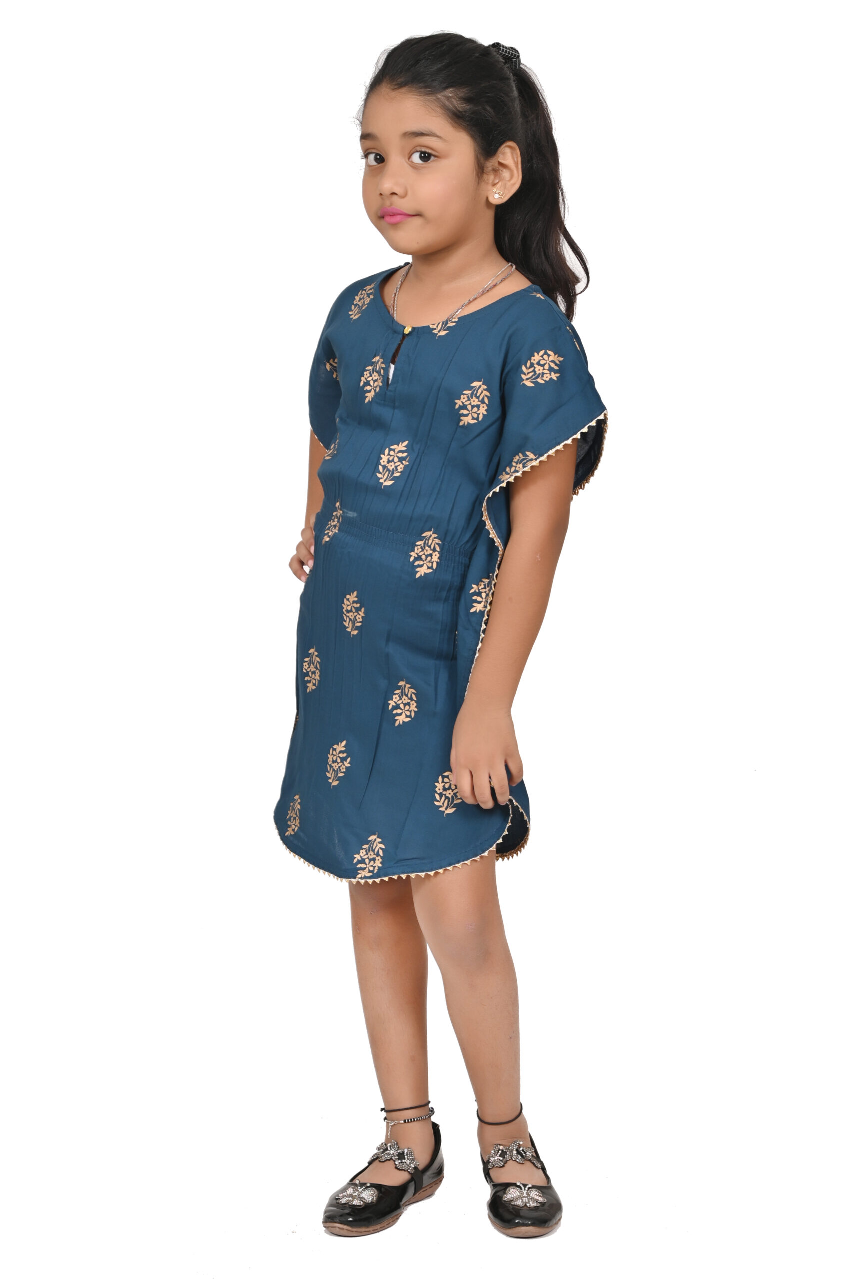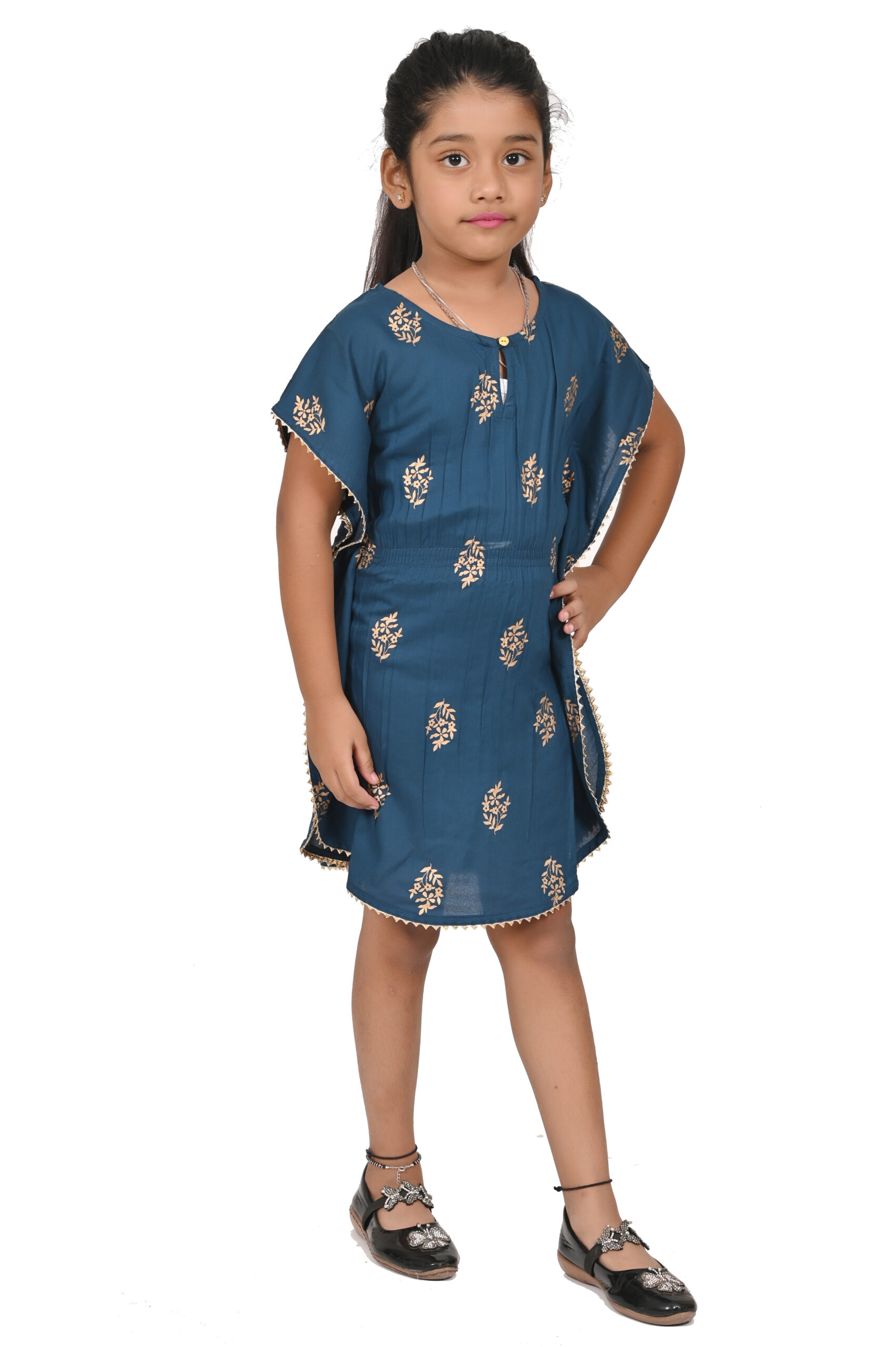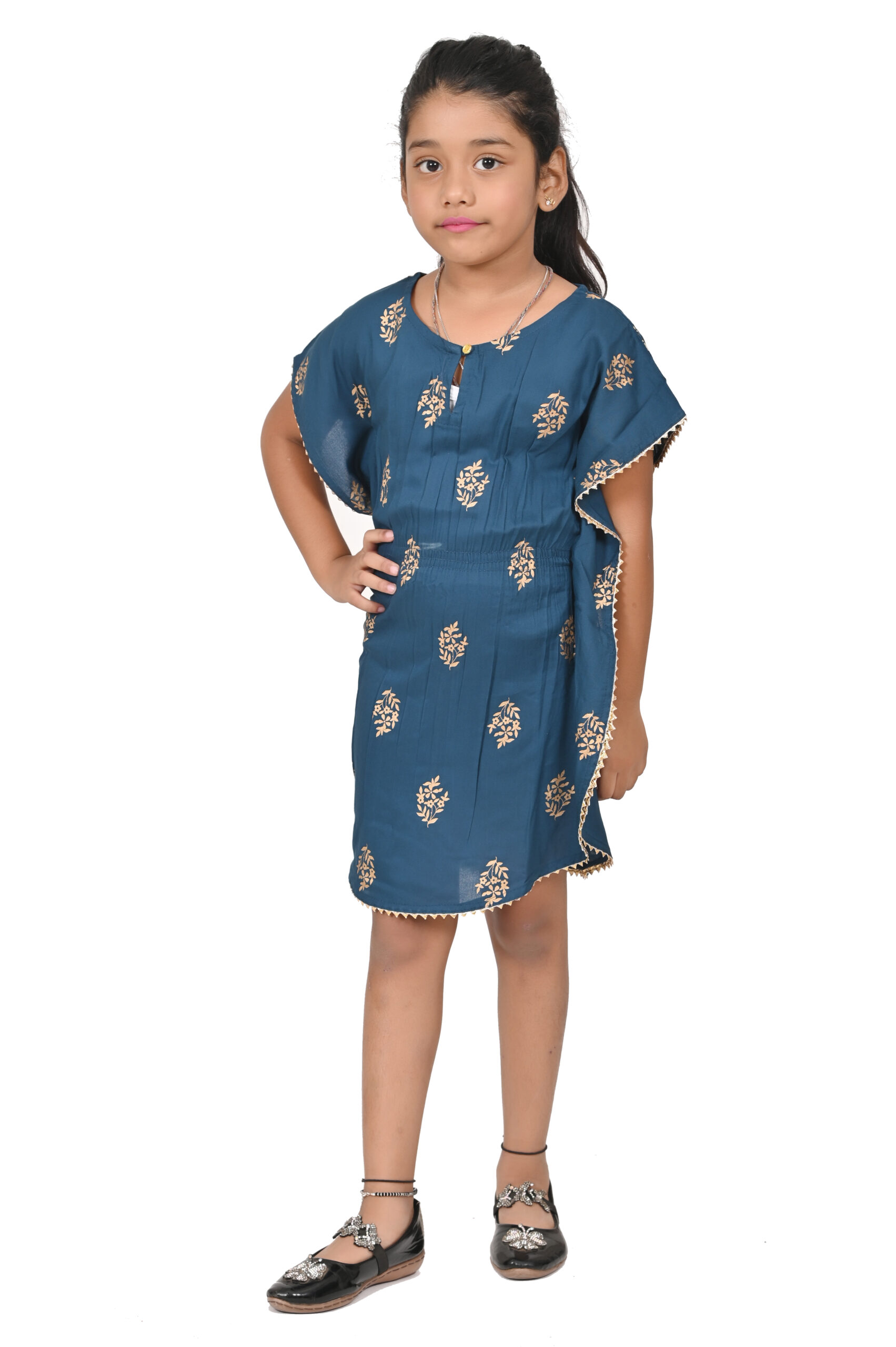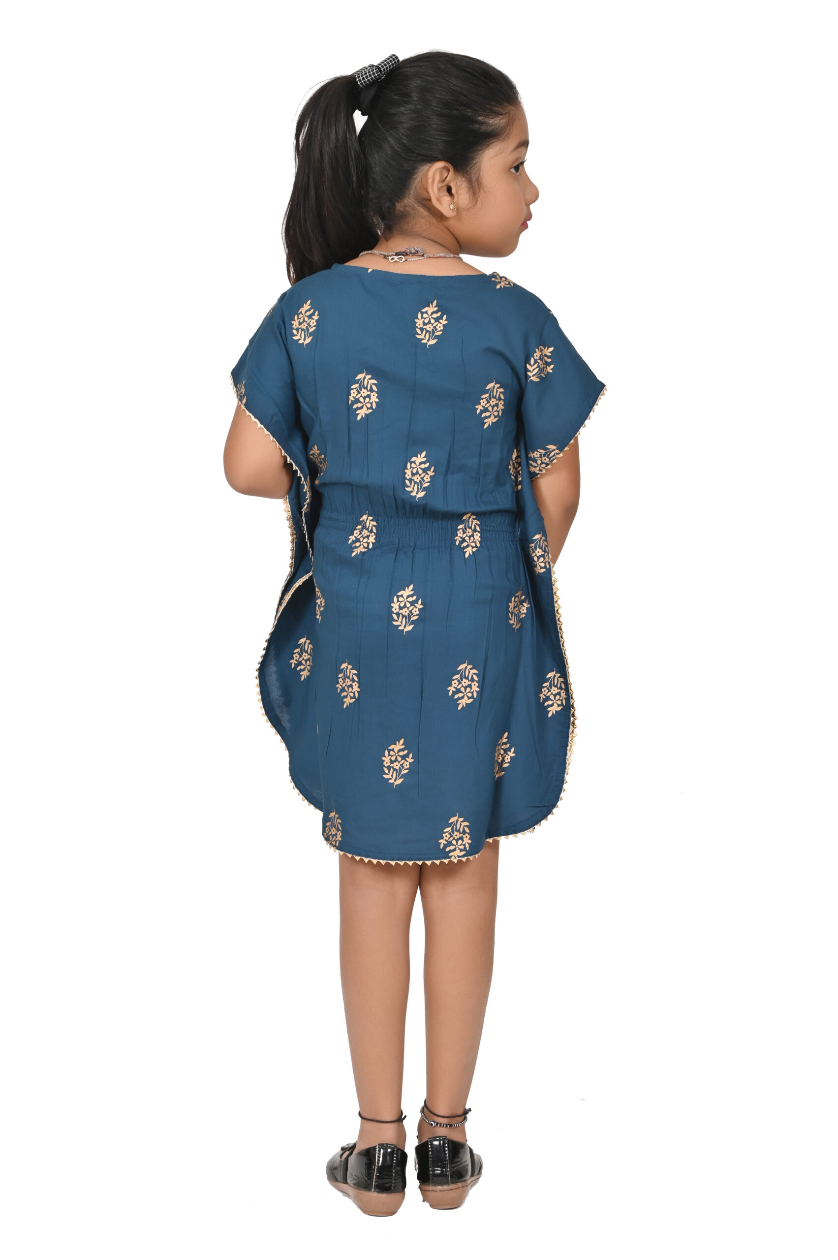 Printed Kaftan Kurti Kids Dress for Girls – Rayon Teal Blue