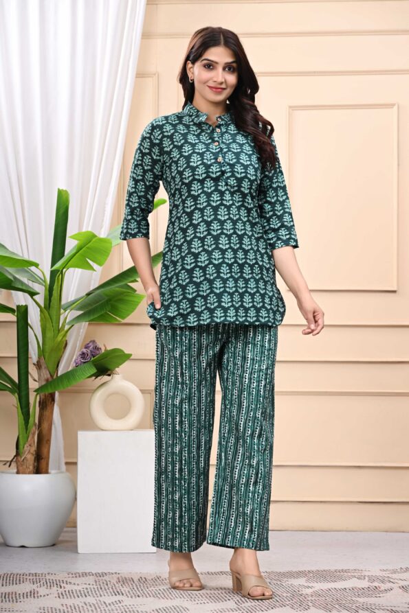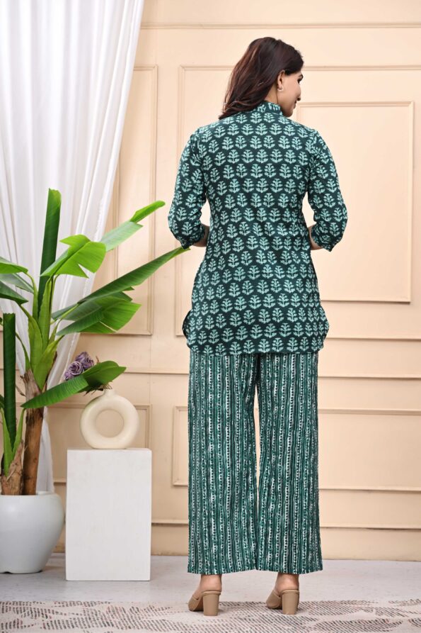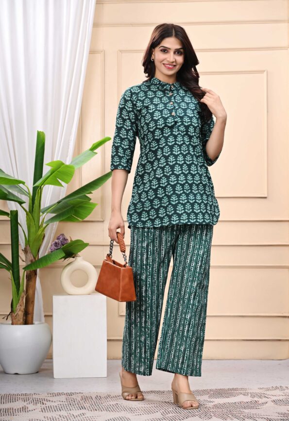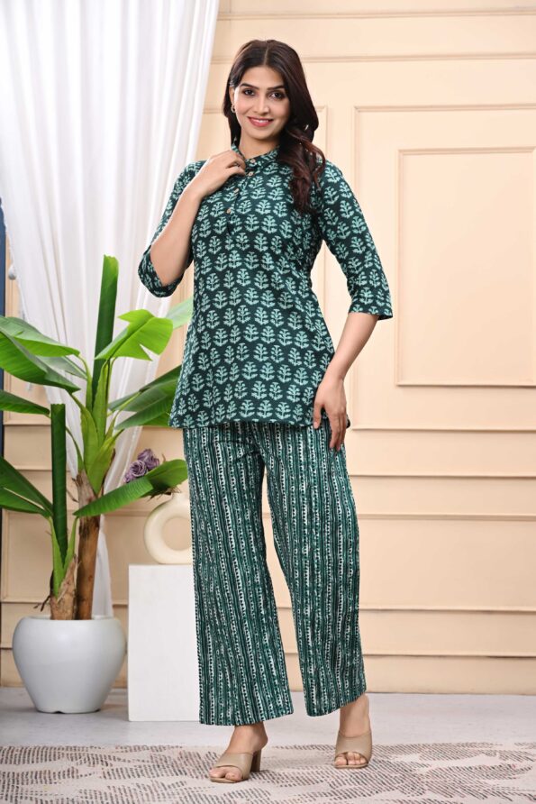 Pure Cotton Tunics Top With Palazzo Co-ord Set for Women | Green