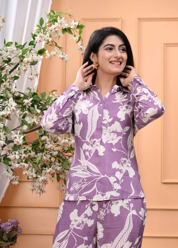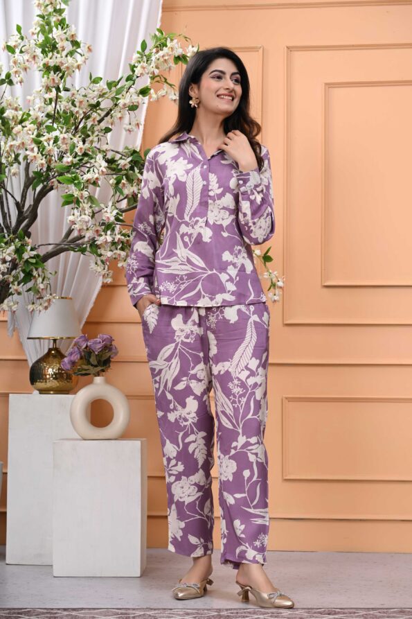 Pure Cotton Co-ord Set for Women for Summer & Spring | Printed Purple