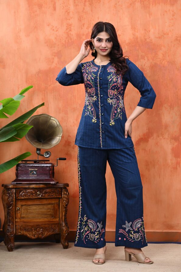 Pure Cotton Tunics Top With Palazzo Co-ord Set for Women | Navy Blue