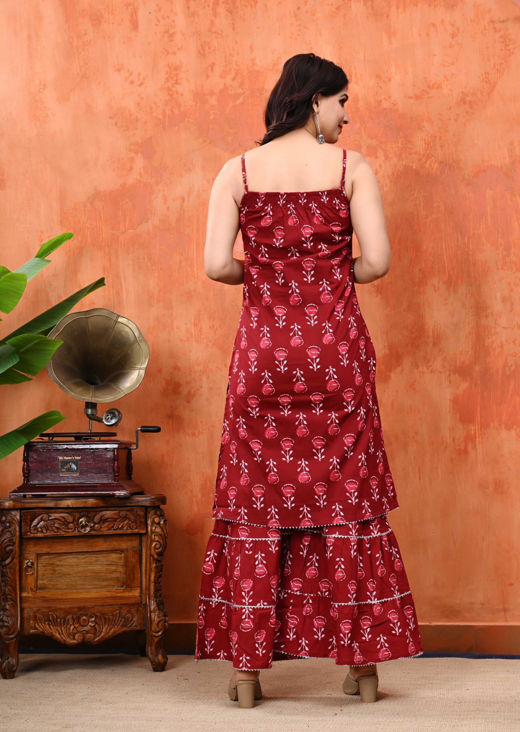 Sleeveless Anarkali Kurta Set for Women | Maroon