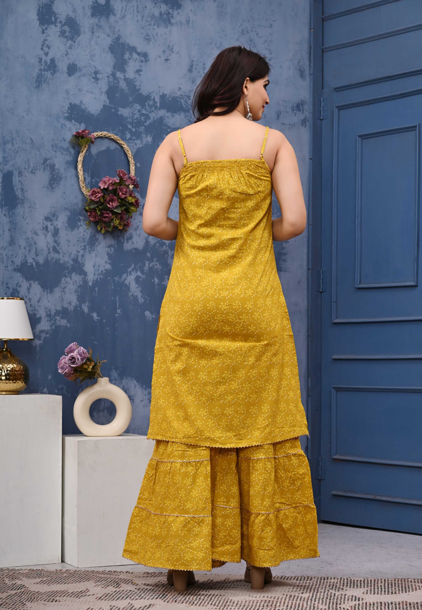 Sleeveless Anarkali Kurta Set for Women | Yellow