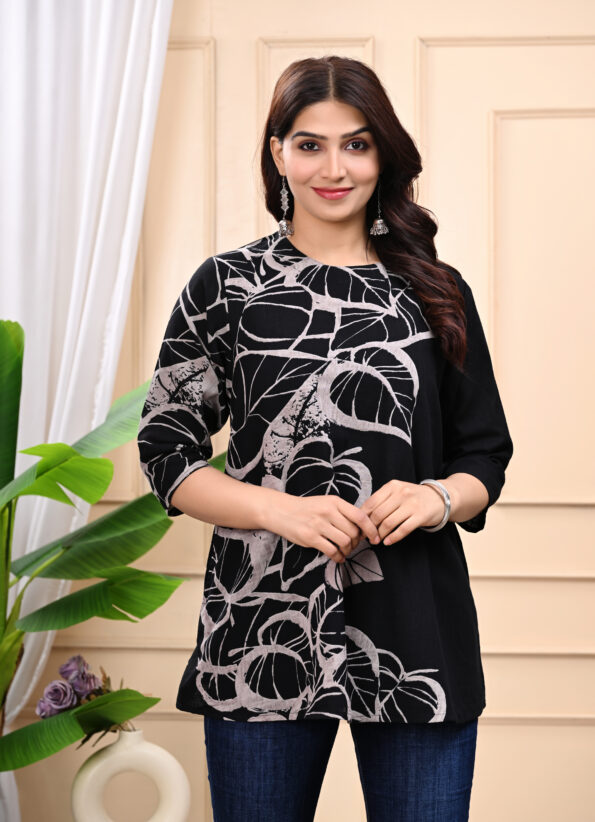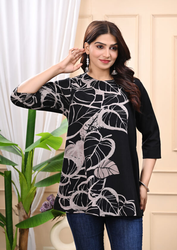 Stylish & Comfortable V-Neck Cotton Tops for Women | Floral Black