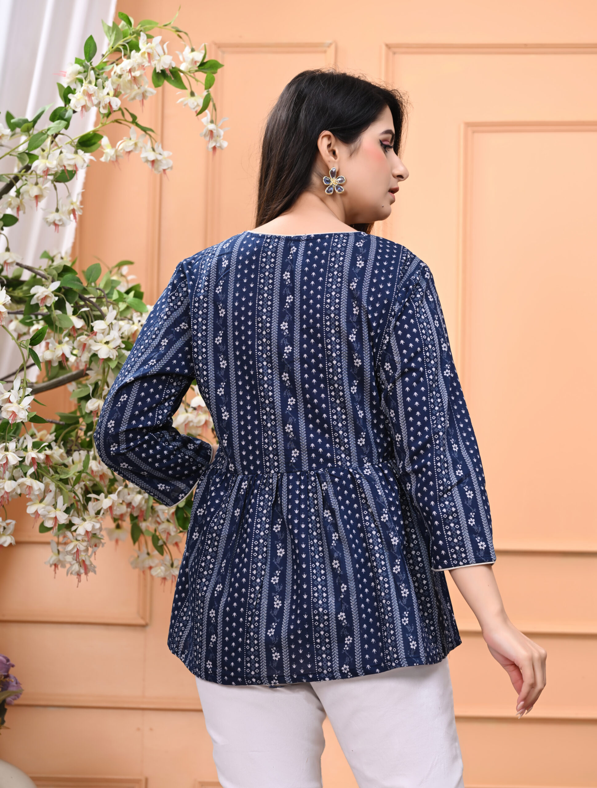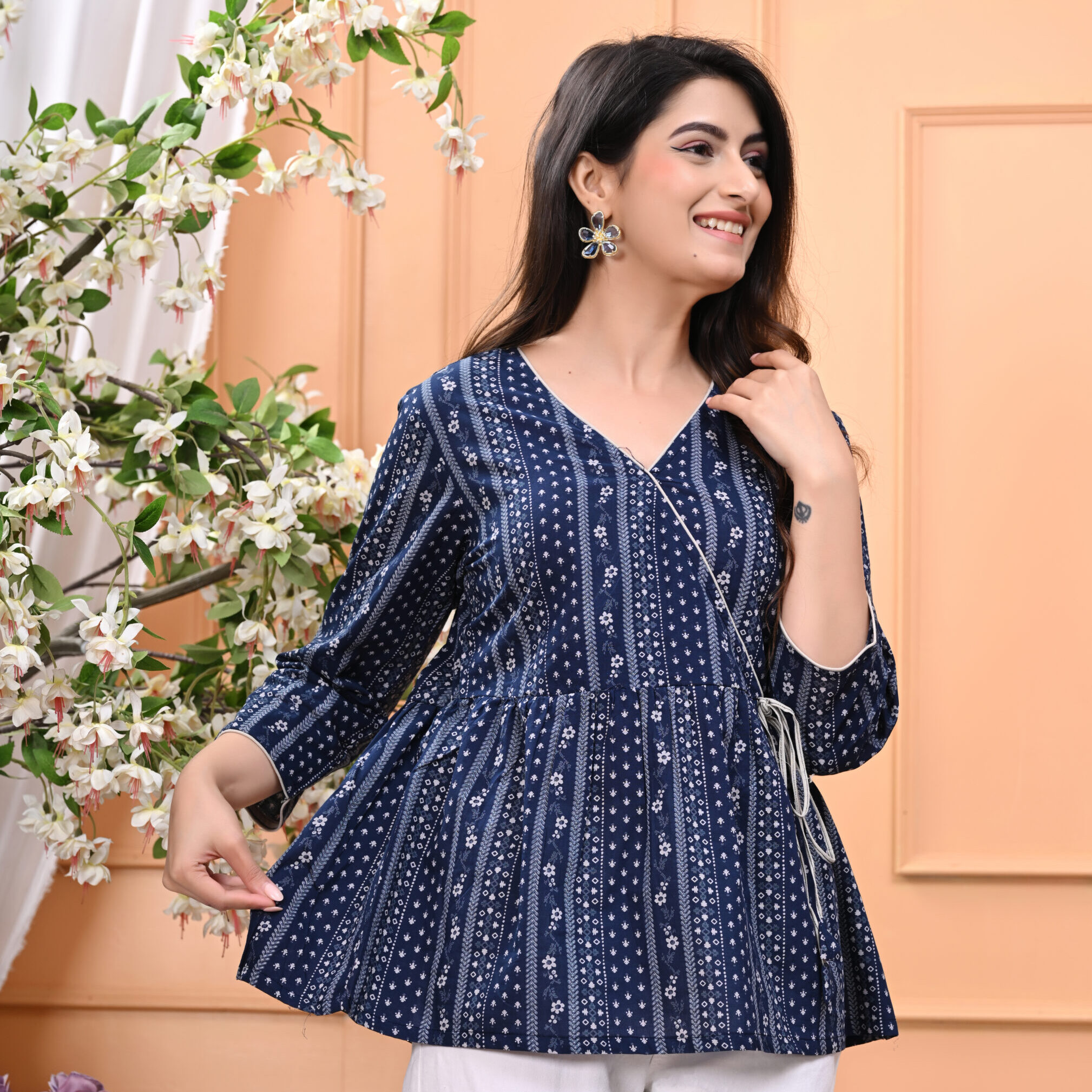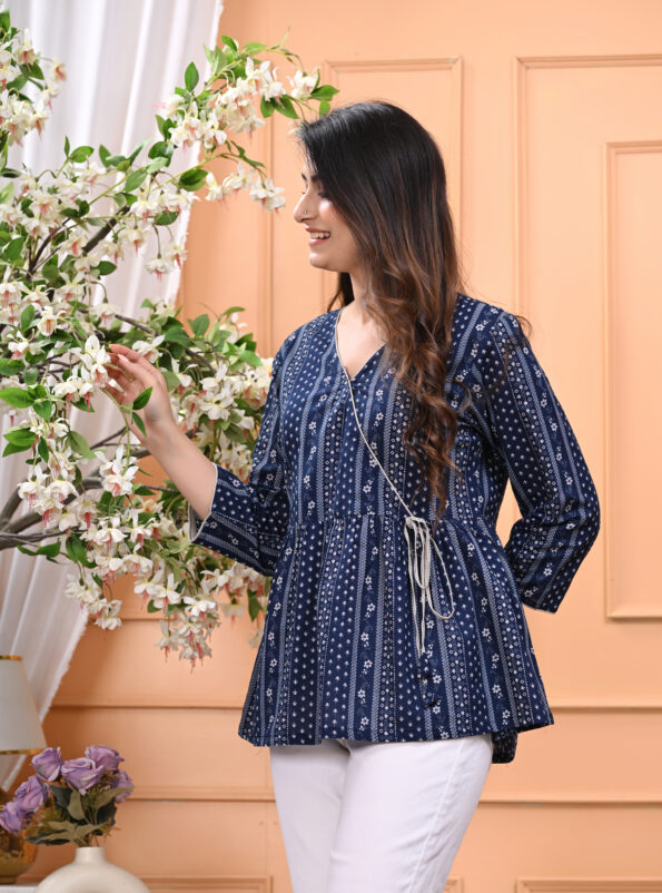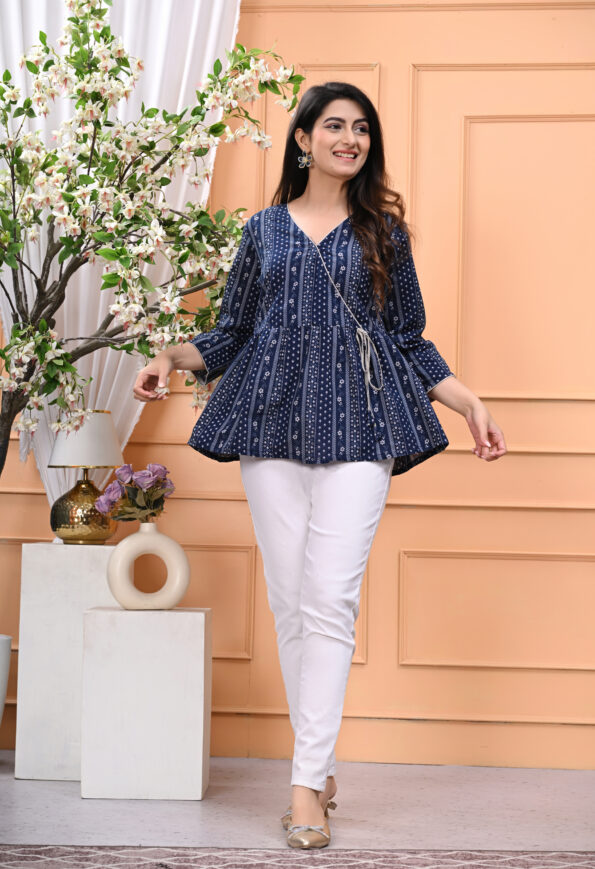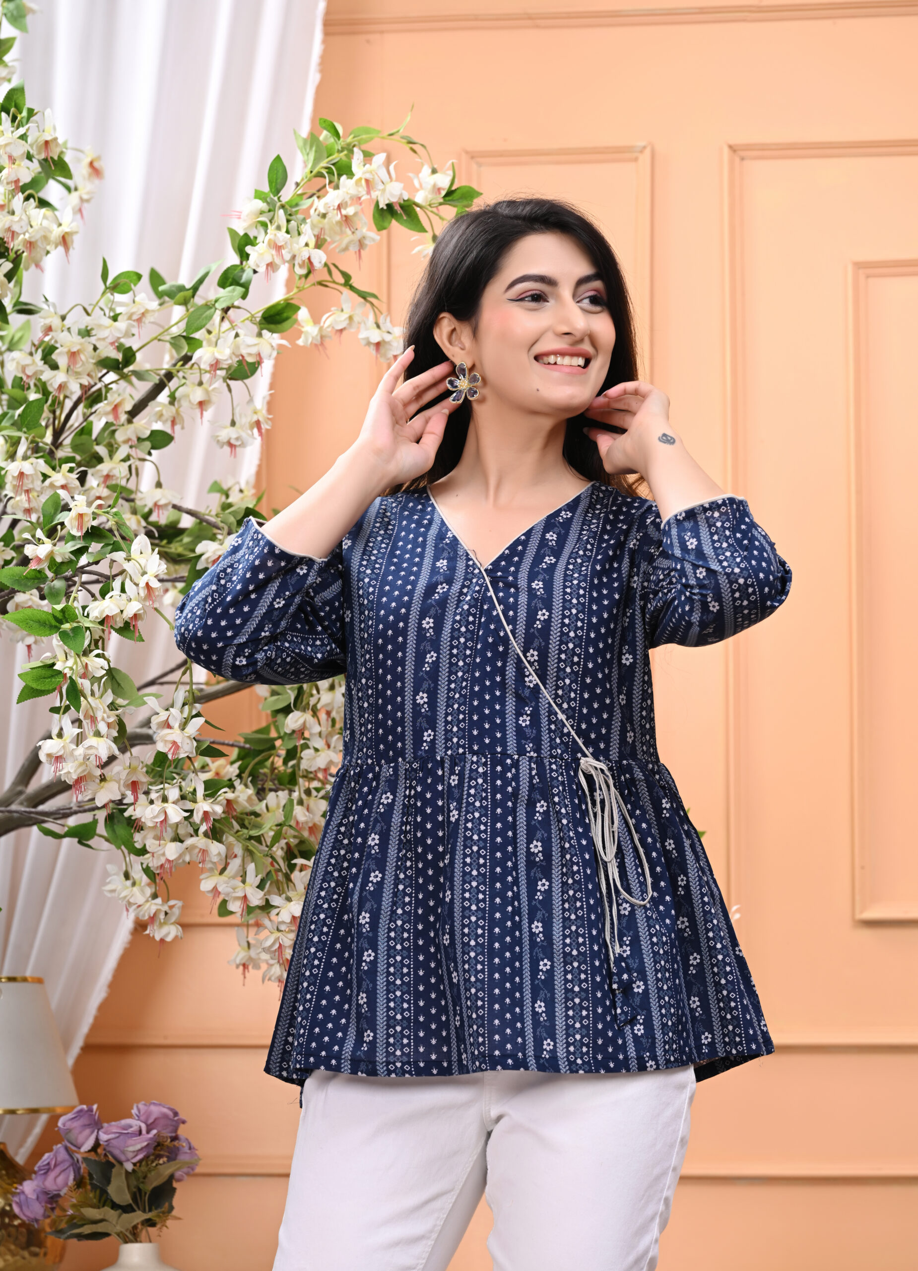 Stylish & Comfortable V-Neck Cotton Tops for Women | Navy Blue