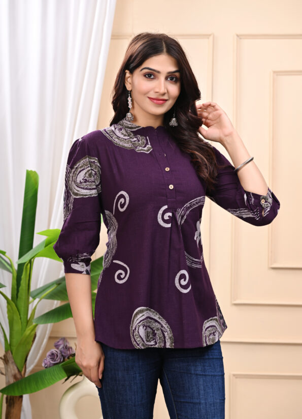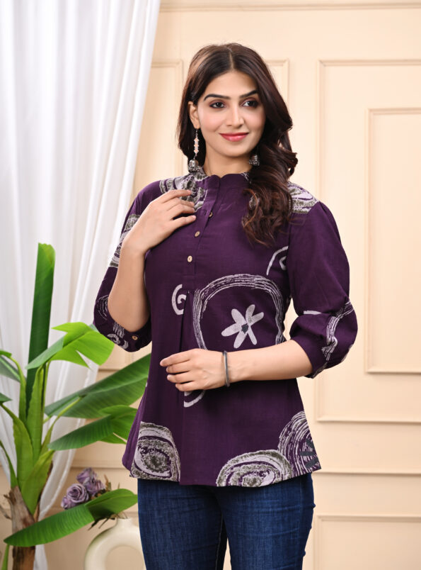 Stylish & Comfortable V-Neck Cotton Tops for Women | Purple