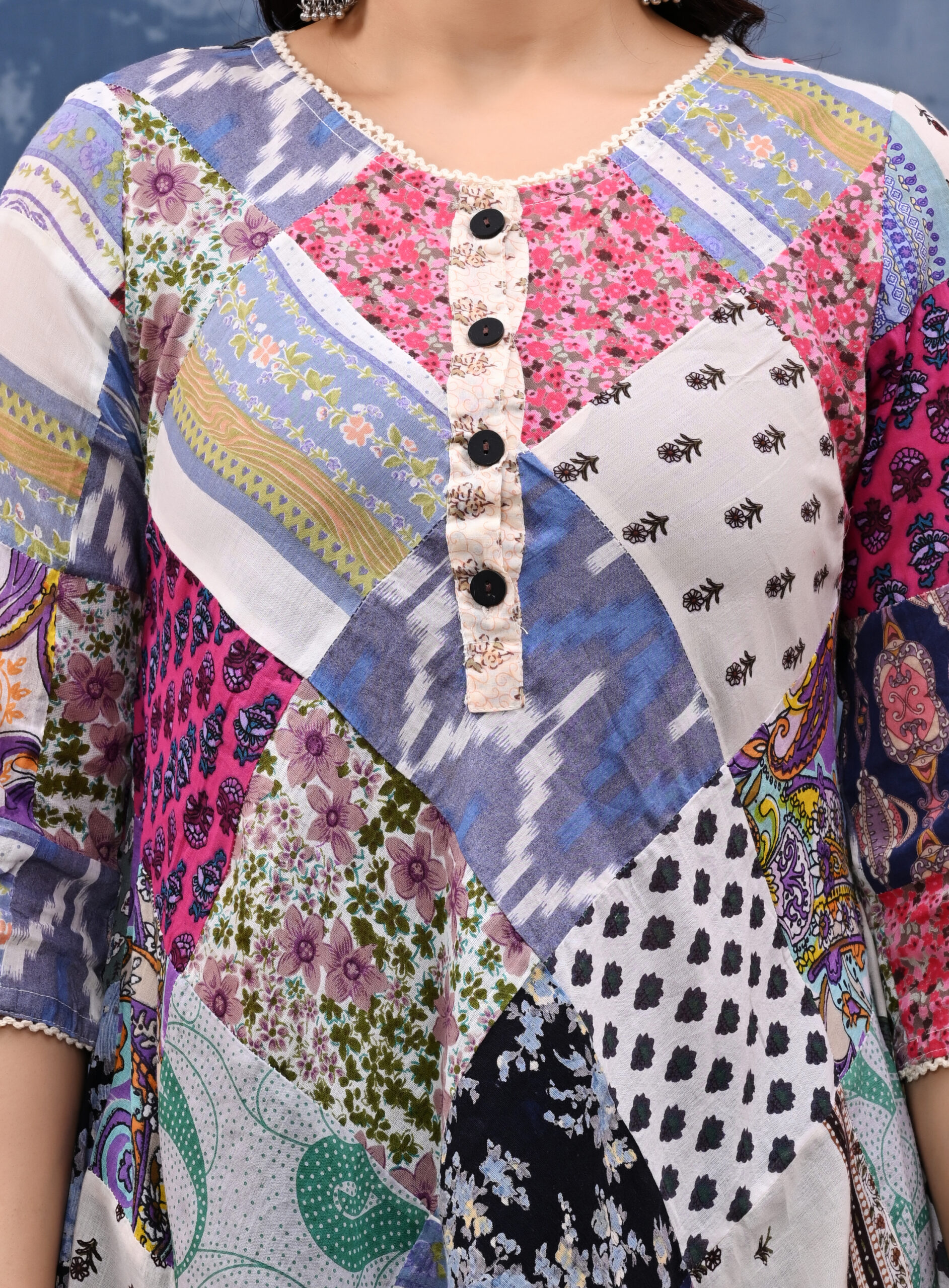 Be the first to review “Women Floral Print Patch Work Cotton A-Line Top | Multicolor”